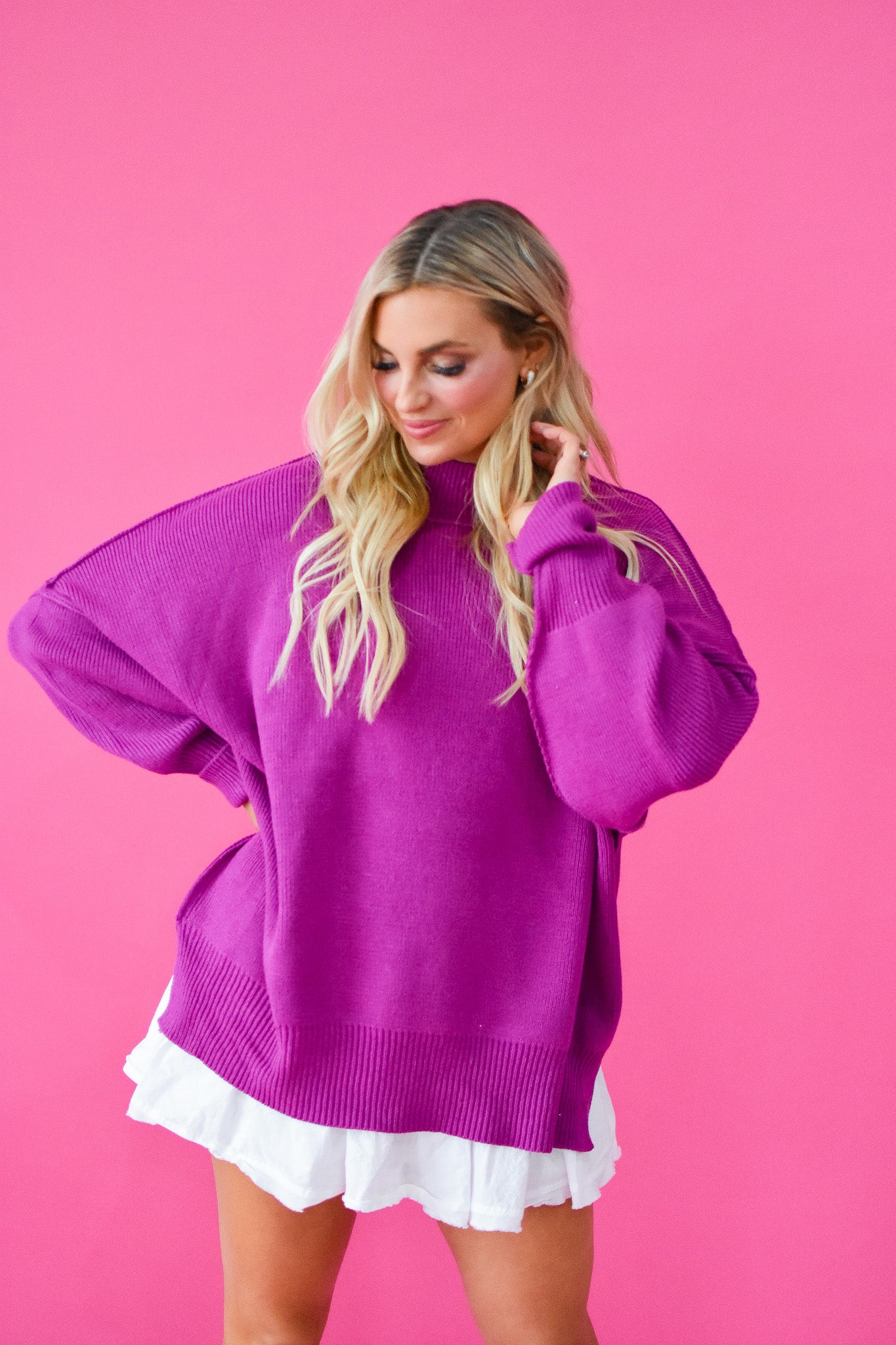 Look like a designer without the designer price tag in this best-selling Bradie Sweater! It's perfect for any occasion, with a tunic-length and side slits for a relaxed fit, and a classic crew neck. Wear it with your fave leggings or denim for a look that will sure turn heads.