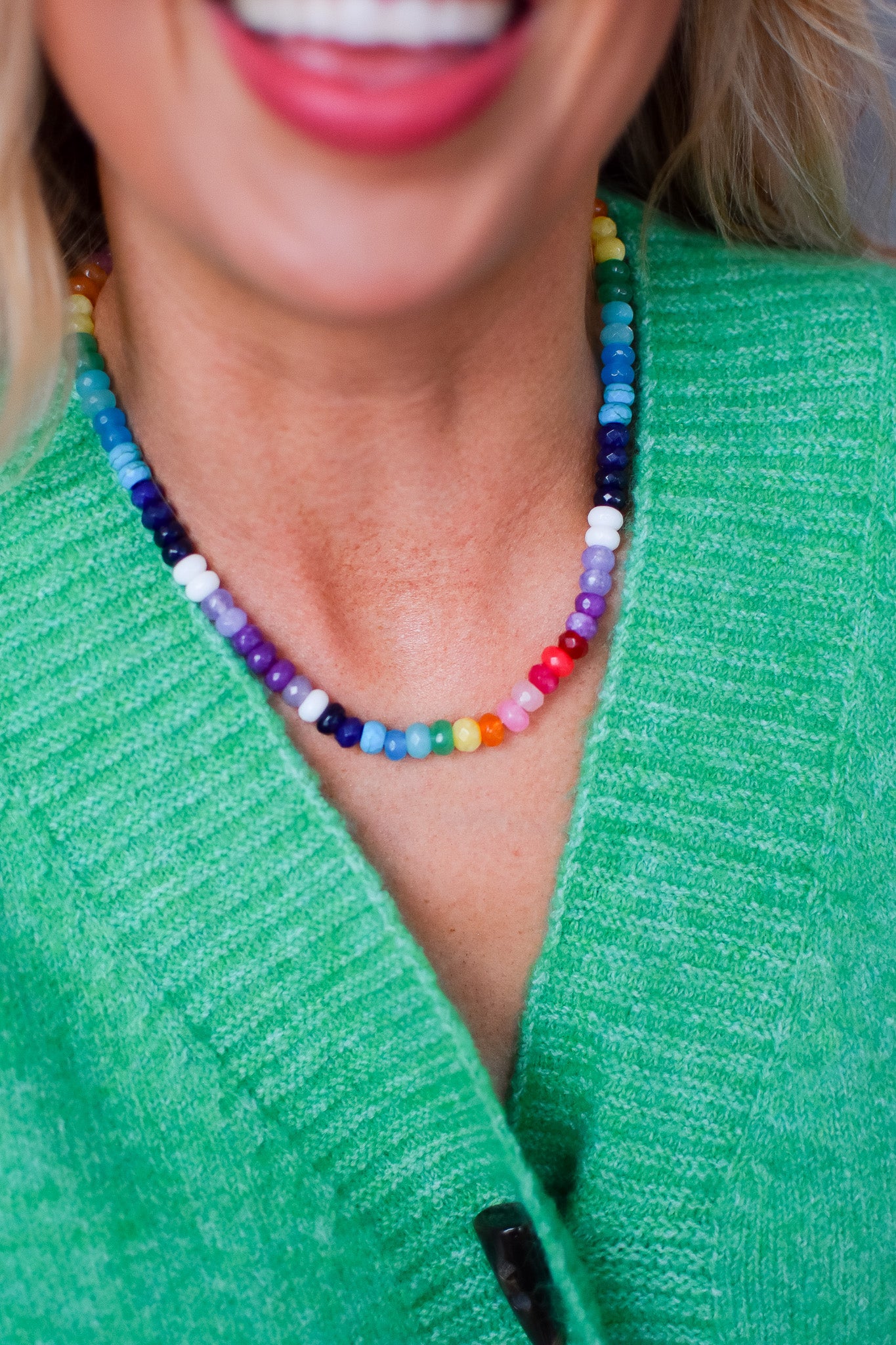 Add a pop of color to your outfit with our Rainbow Necklace Luxe! This on trend necklace stack features vibrant gemstones, making it a best seller with five stars. Stand out and be the envy of others with this playful and stylish piece.