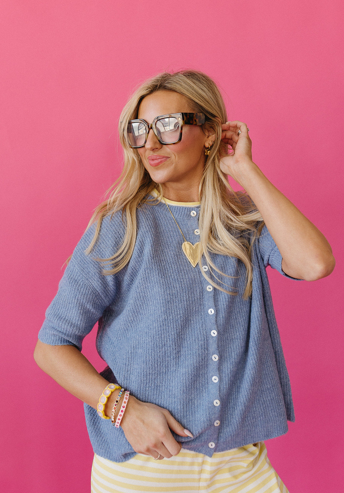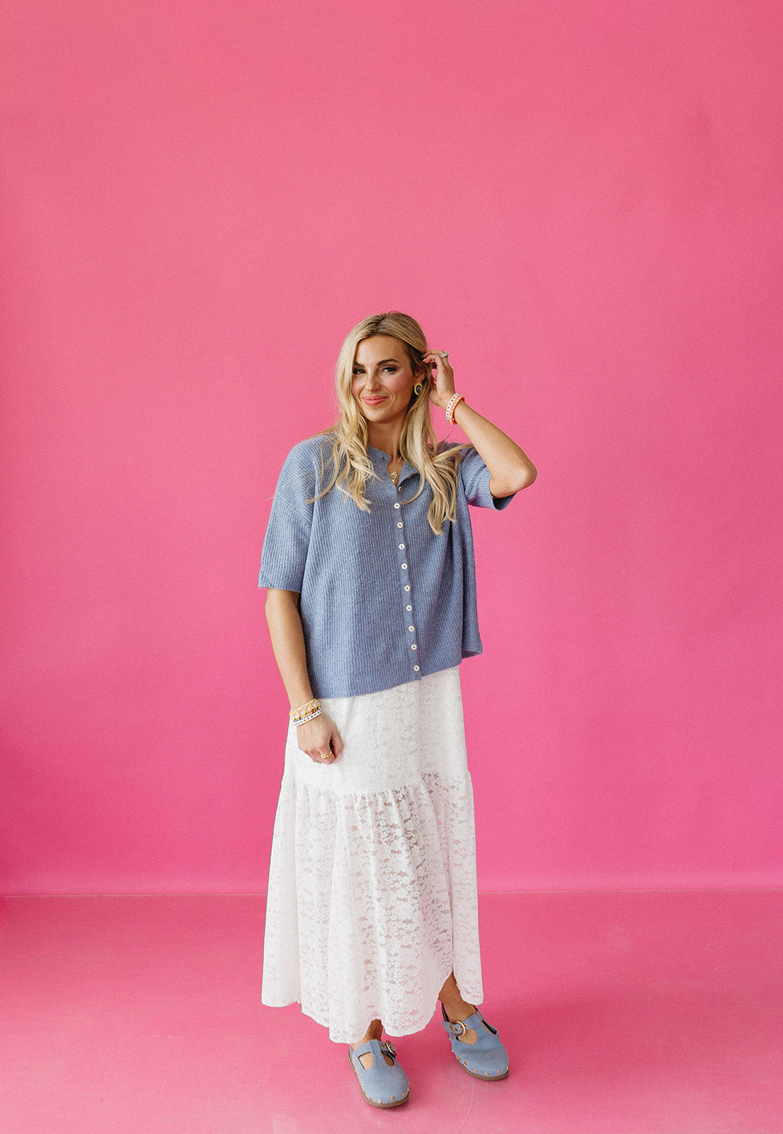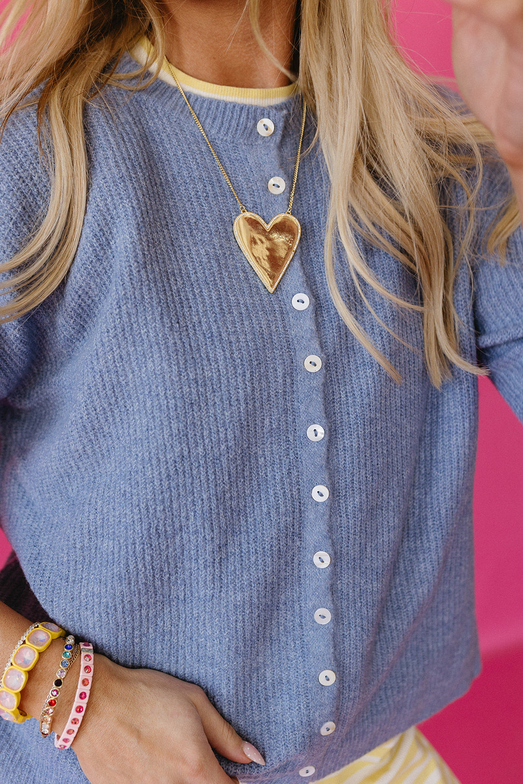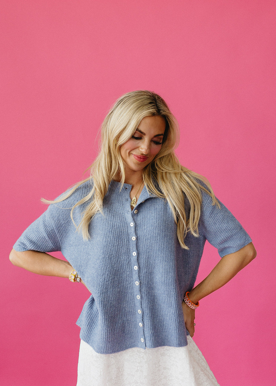 The Rowan Cardigan (now in dusty blue!) is an absolute dream—seriously, the fit is a 10/10. Crafted from incredibly soft fabric with functional buttons that actually work, this is the cardigan you've been waiting for. Perfect for any day you want to feel effortlessly put-together, it features slimmer sleeves that hit right at your elbow for a flattering silhouette. Similar fit to our beloved Piper style, but with that extra tailored touch. Your new favorite layer awaits.