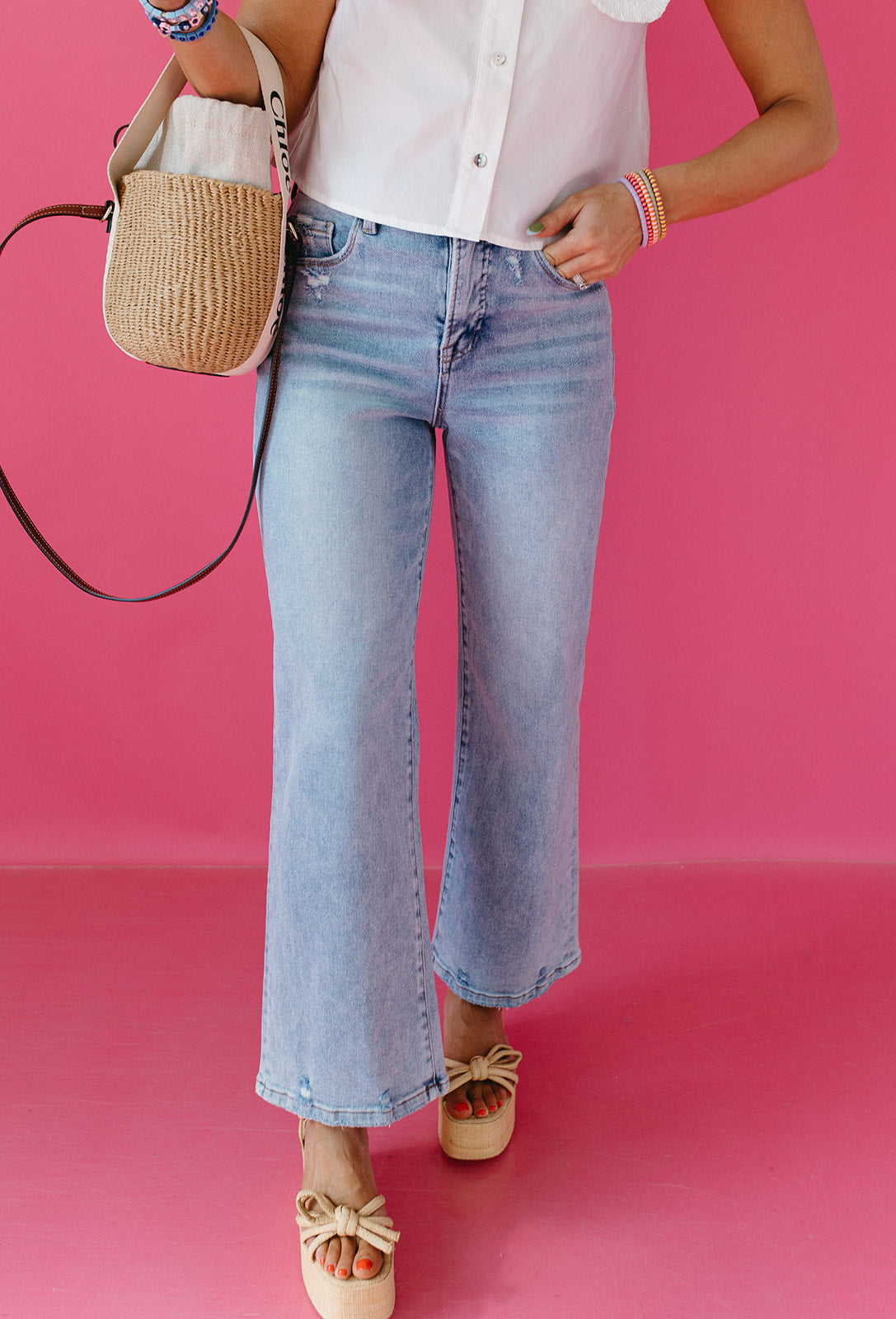 The Dara are the jeans that check every box — a high-rise, relaxed crop with tummy control, a great stretch, and a very slight distressing that keeps them polished enough for the office and casual enough for the weekend. Fits just like our Hannah White Denim, so if you love those, you'll love these.