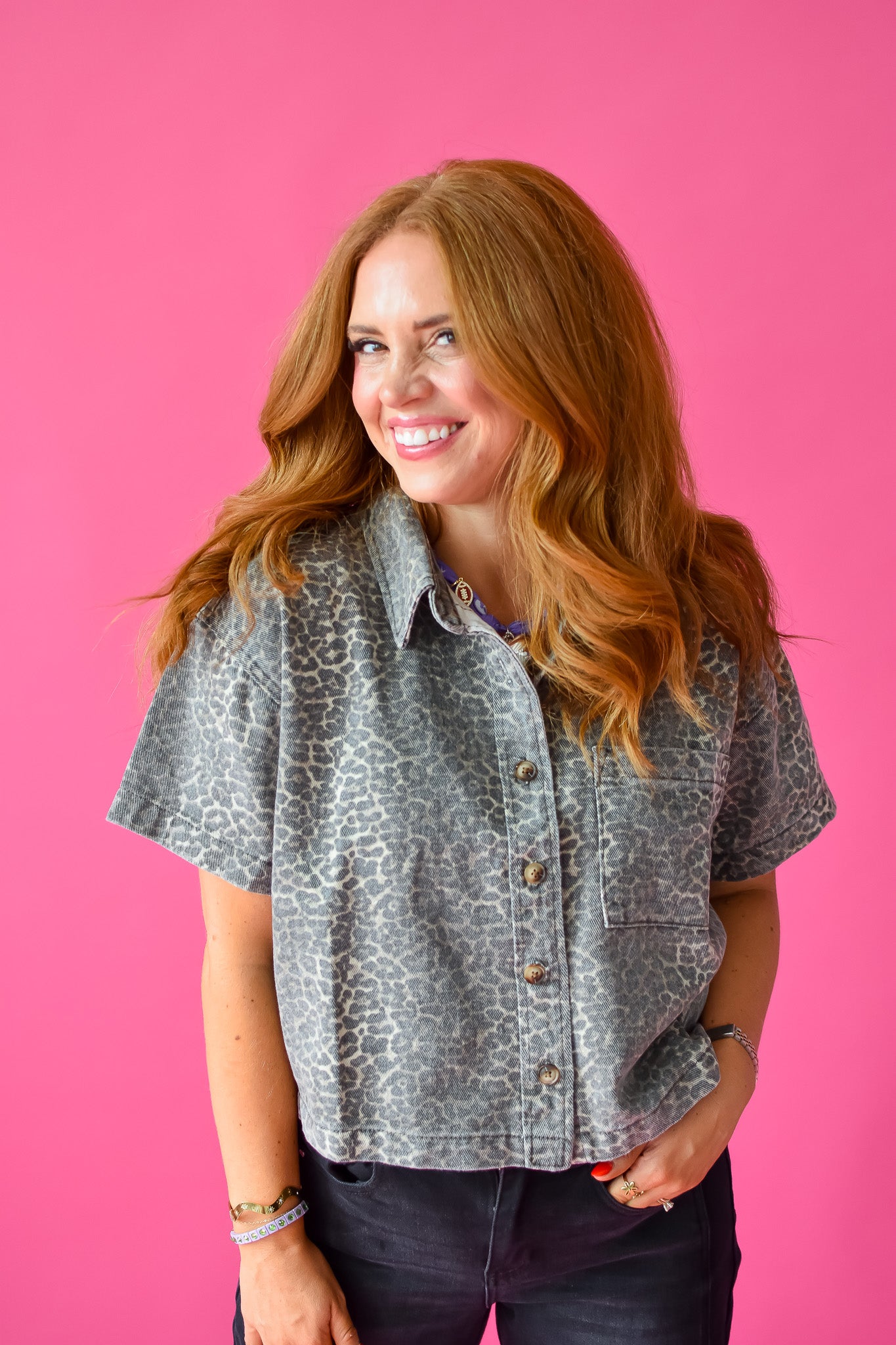 Add a wild twist to your wardrobe with the Dolly Denim Top in Leopard. This playful button-up features a relaxed, boxy fit that’s perfect for layering or wearing solo. The leopard print adds a fun, trendy edge to classic denim, making it your new go-to for casual days with a bit of flair. Comfortable and effortlessly cool, it’s the cutest way to stand out!