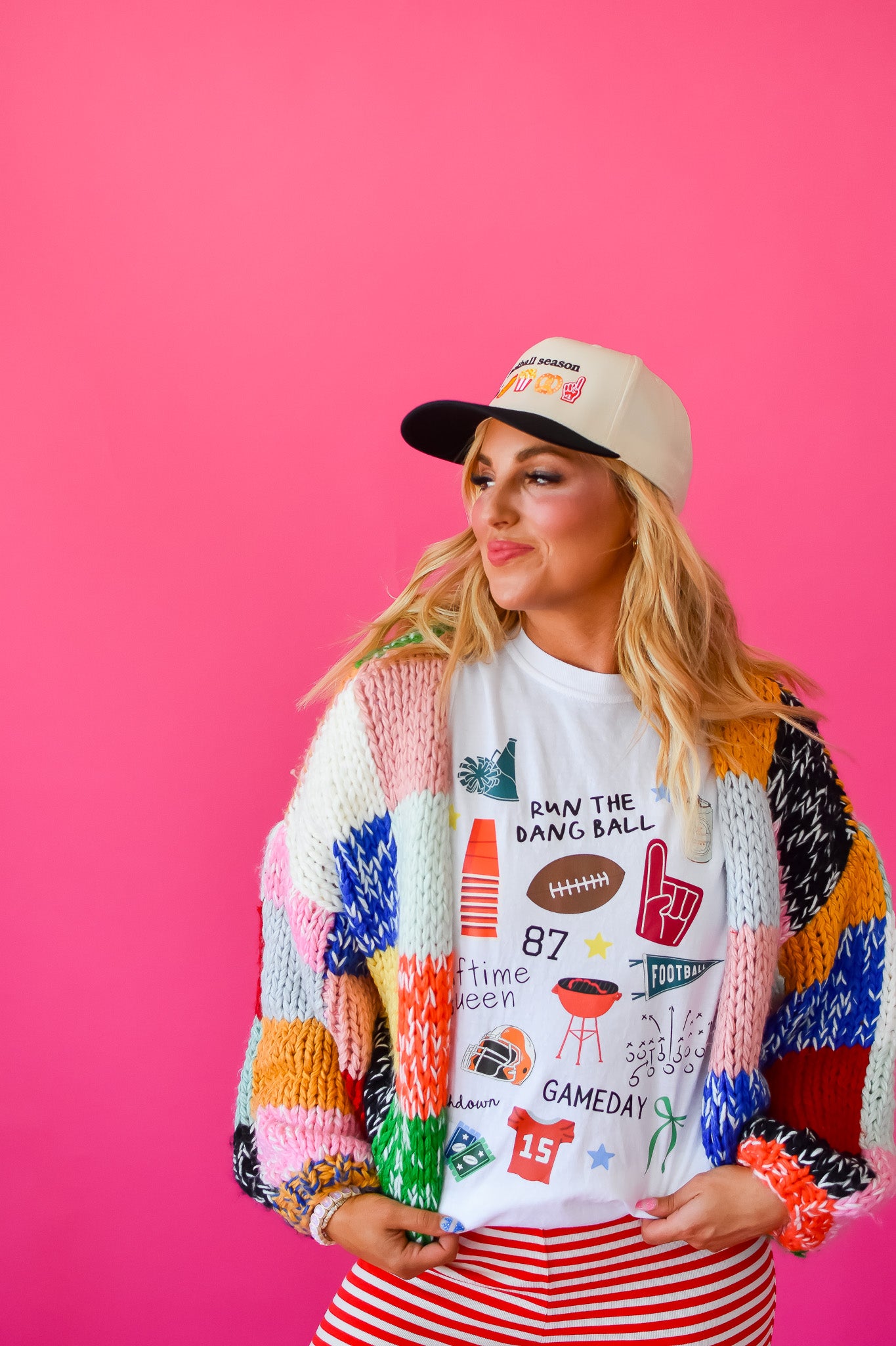 Get game day ready with the Halftime Queen Graphic Tee! This fun, playful tee pairs perfectly with your favorite stripe pants or layered under our best-selling color block cardigan, making you the ultimate fan both on and off the field. Celebrate every moment in style and comfort!