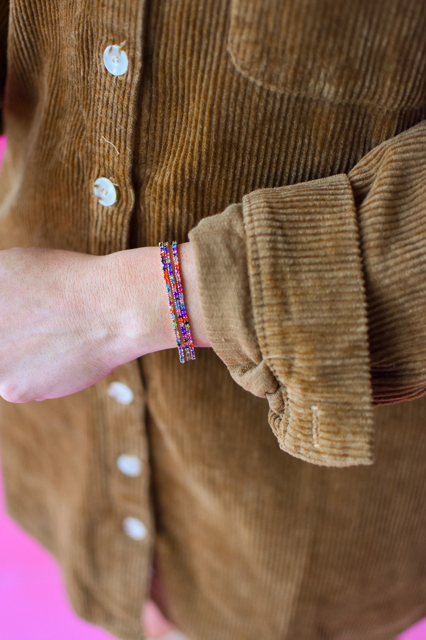 Add a pop of sparkle and color to any outfit with this trio of dainty stretch bracelets. Each bracelet features vibrant multi-colored rhinestones that catch the light beautifully, making them perfect for stacking or wearing solo. Comfortable and flexible, these bracelets adapt to your wrist for an effortless, playful look that shines all day long.