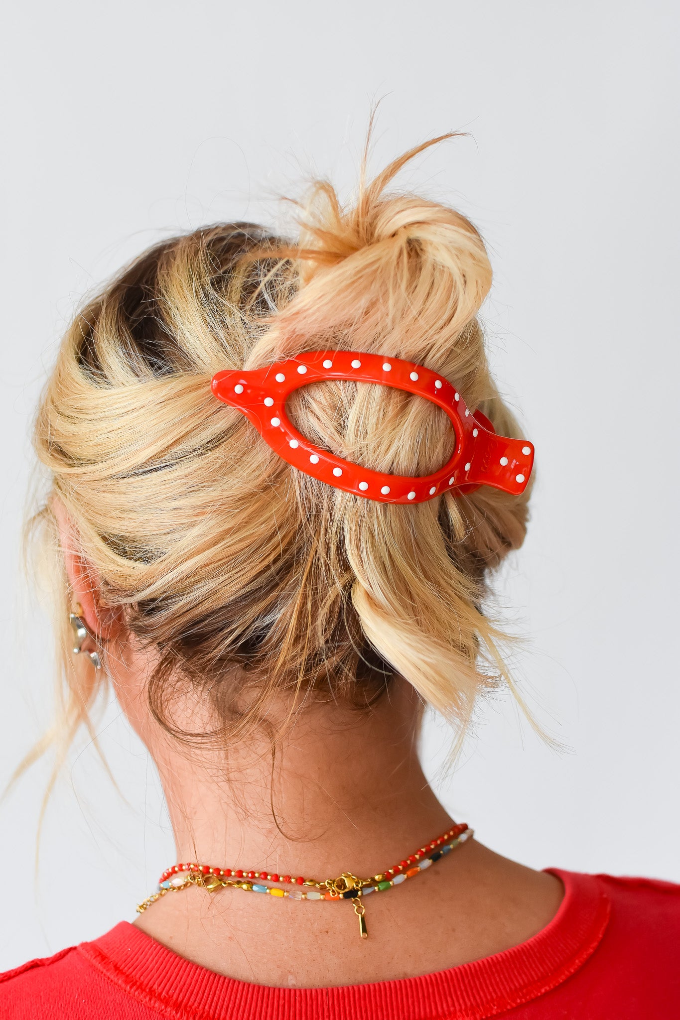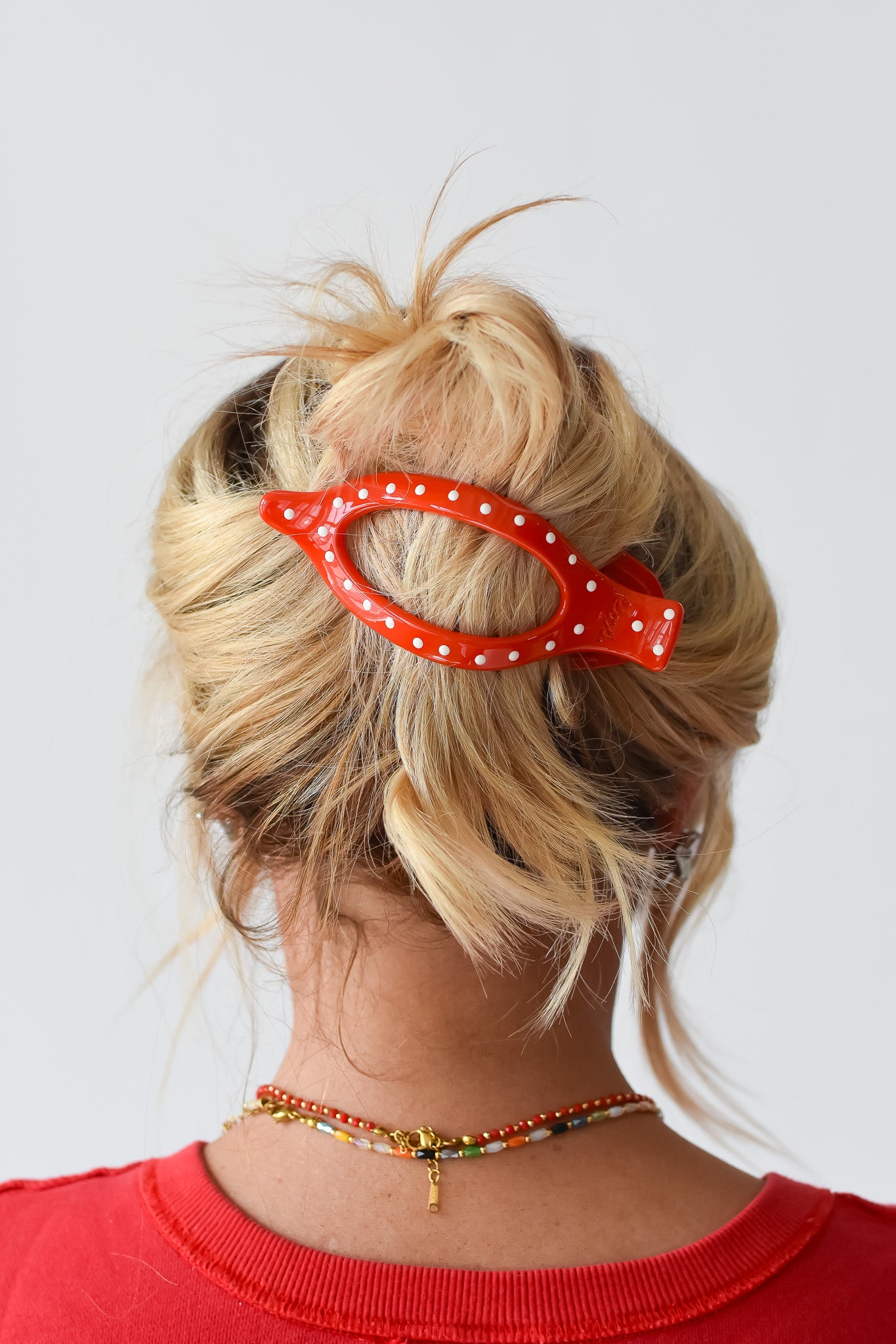 Add a pop of autumn to your look with the Lay Down Claw Clip 2.0 in Red Polka Dot. This flat clip combines the ultimate comfy fit with a rich fall-inspired shade, making it your go-to for every day. Easy to wear and effortlessly stylish, it holds your hair just right while adding a playful touch to any outfit.