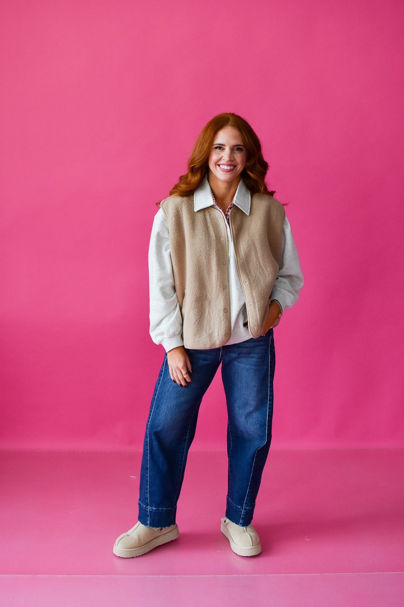 Layer up with serious style in the Caroline Sherpa Vest, your new favorite piece for effortless cool. This chartreuse button-up combines cozy sherpa warmth with a vibrant pop of color that demands attention. Perfect for throwing over anything in your closet—dress it up or down, the versatility is real. The soft sherpa lining keeps you snug while the structured fit flatters every frame. Whether you're heading to brunch or a casual hangout, this vest is your ticket to looking put-together without trying too hard.