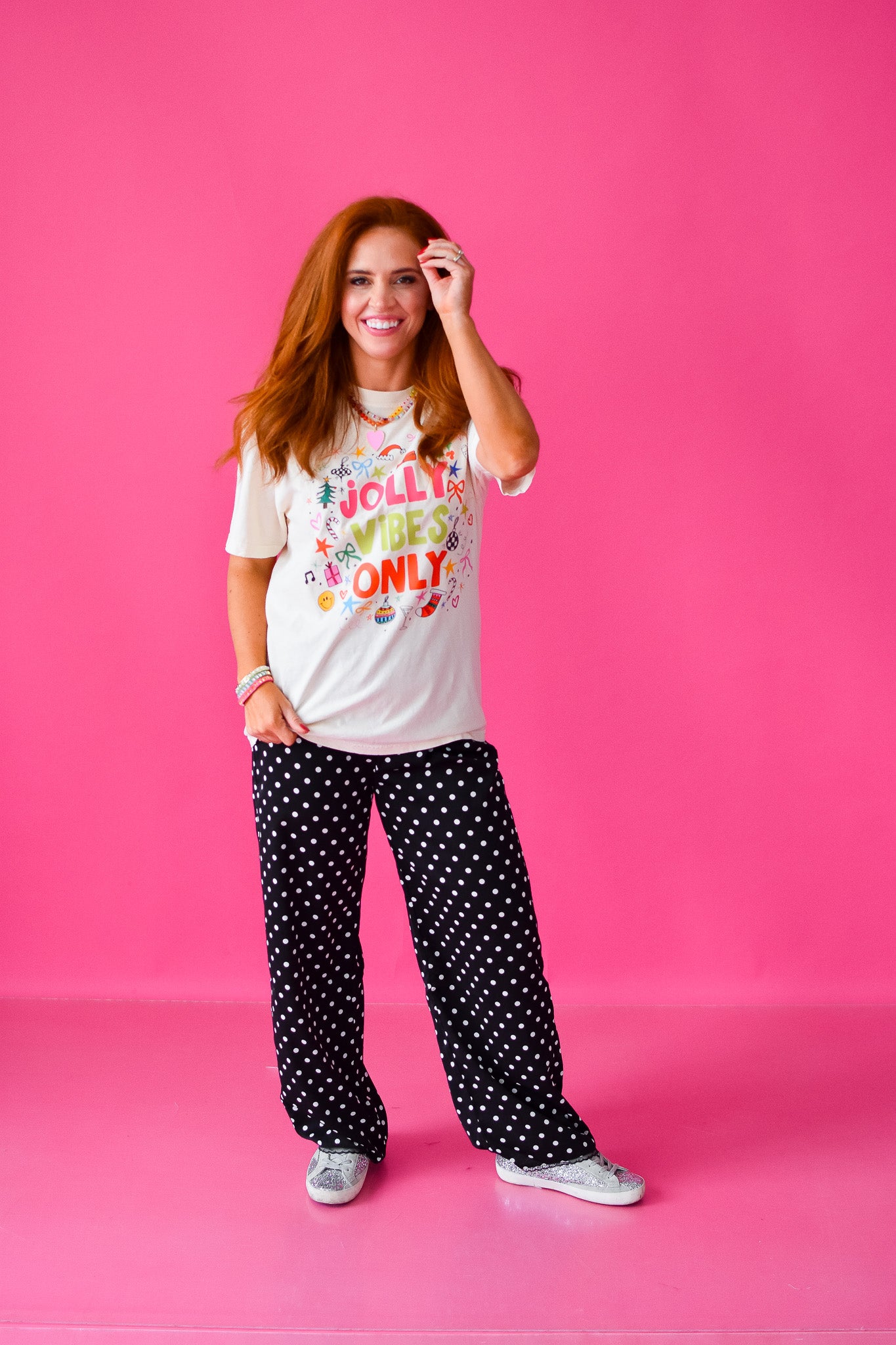 Bring the festive spirit to your wardrobe with the Jolly Vibes Only Graphic Tee. This oversized, multi-colored tee spreads cheerful energy and pairs perfectly with your favorite fun jeans or skirts for a playful, casual look that’s full of holiday joy.