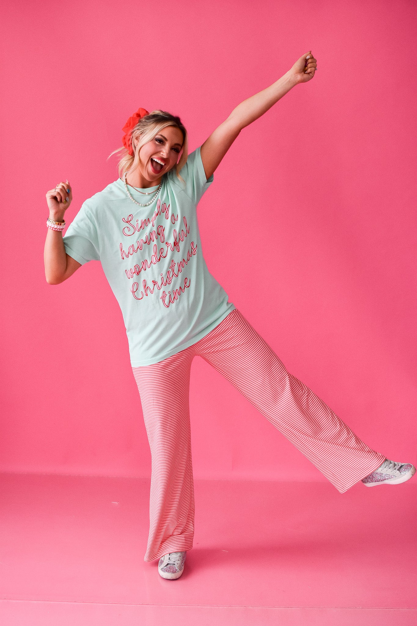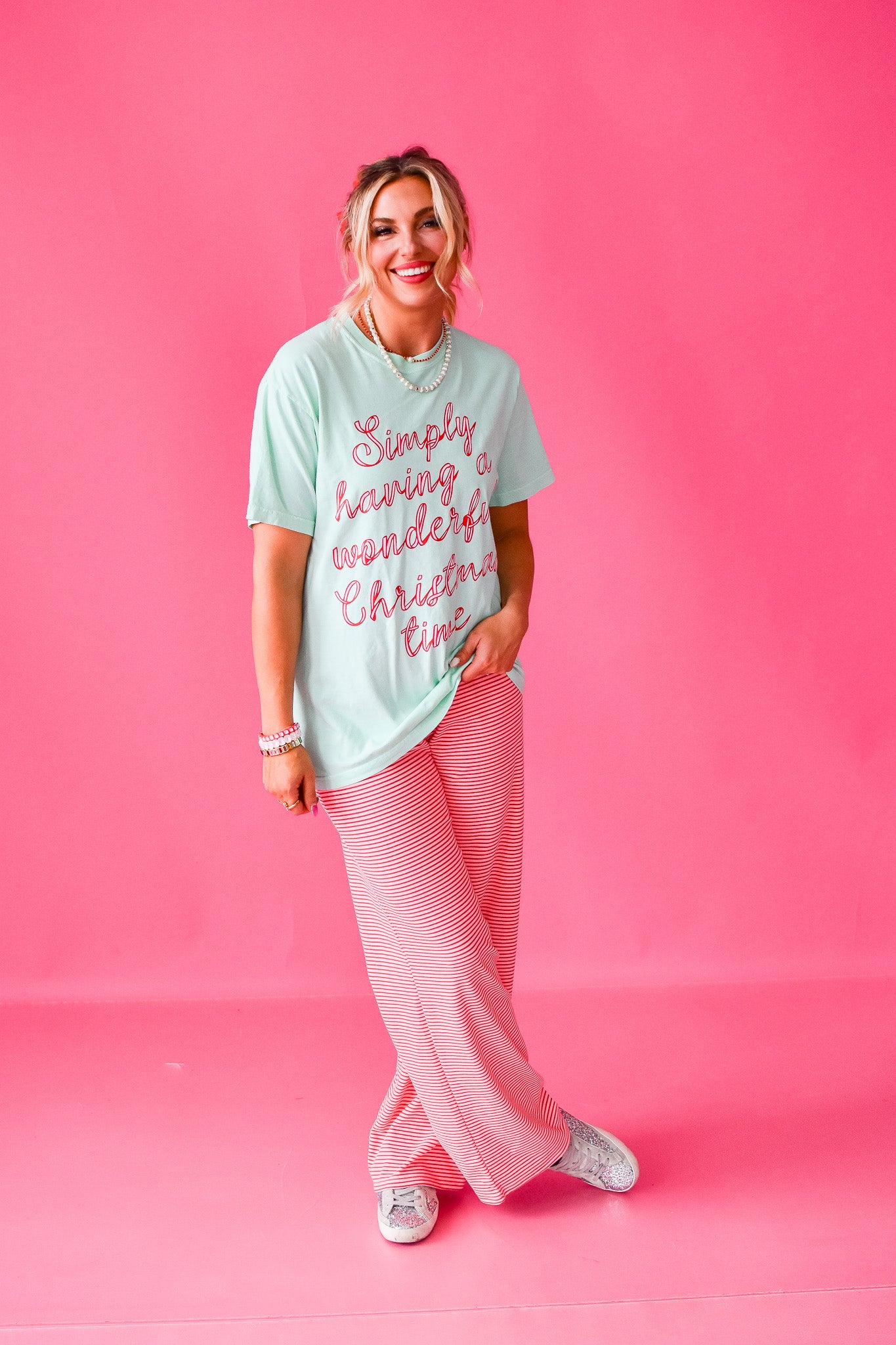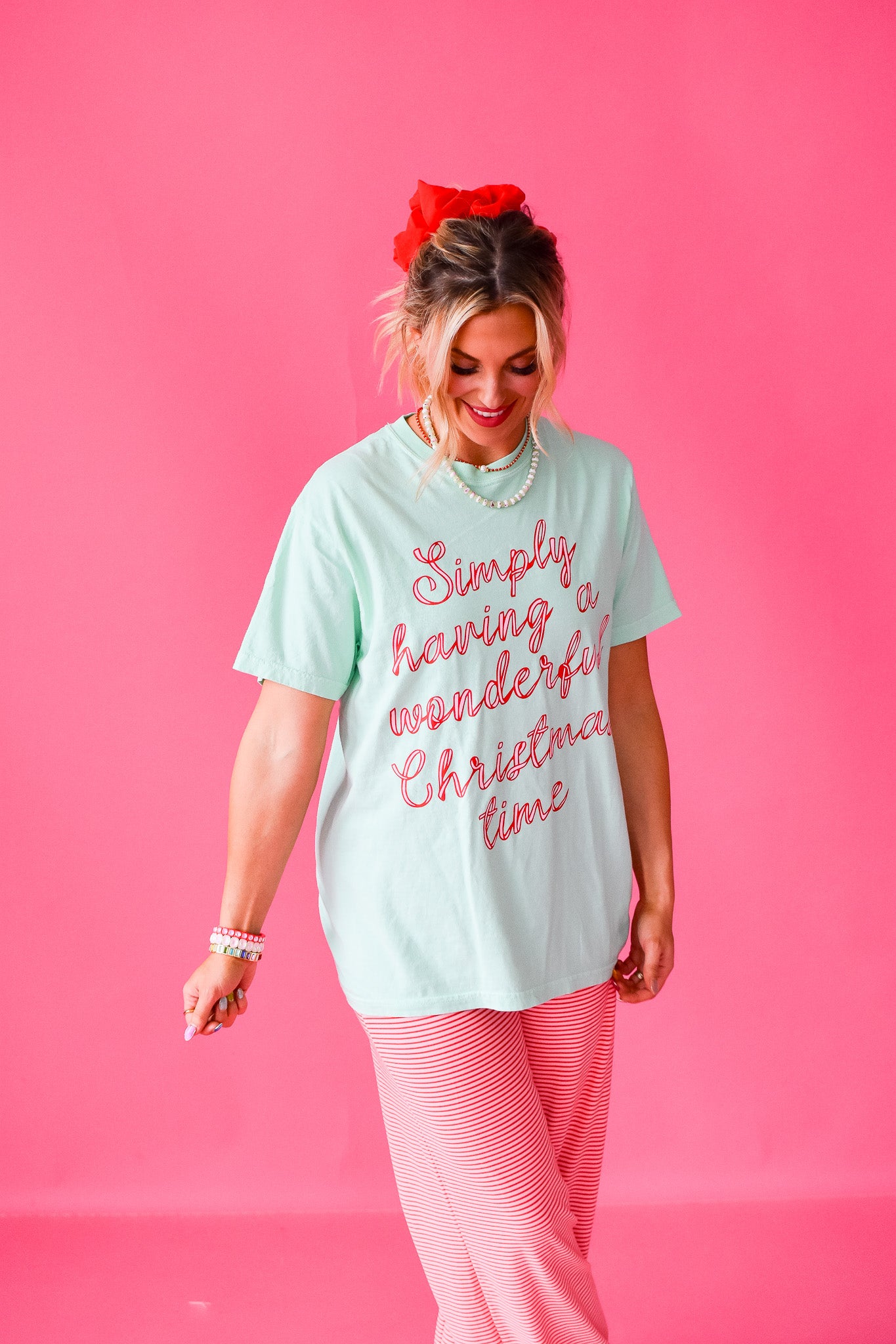 Add a playful pop to your wardrobe with this mint green tee featuring charming pink and red accent lettering. Crafted from soft Comfort Colors fabric, it pairs perfectly with cozy lounge pants or your favorite skirts for a fun and relaxed look all season long.