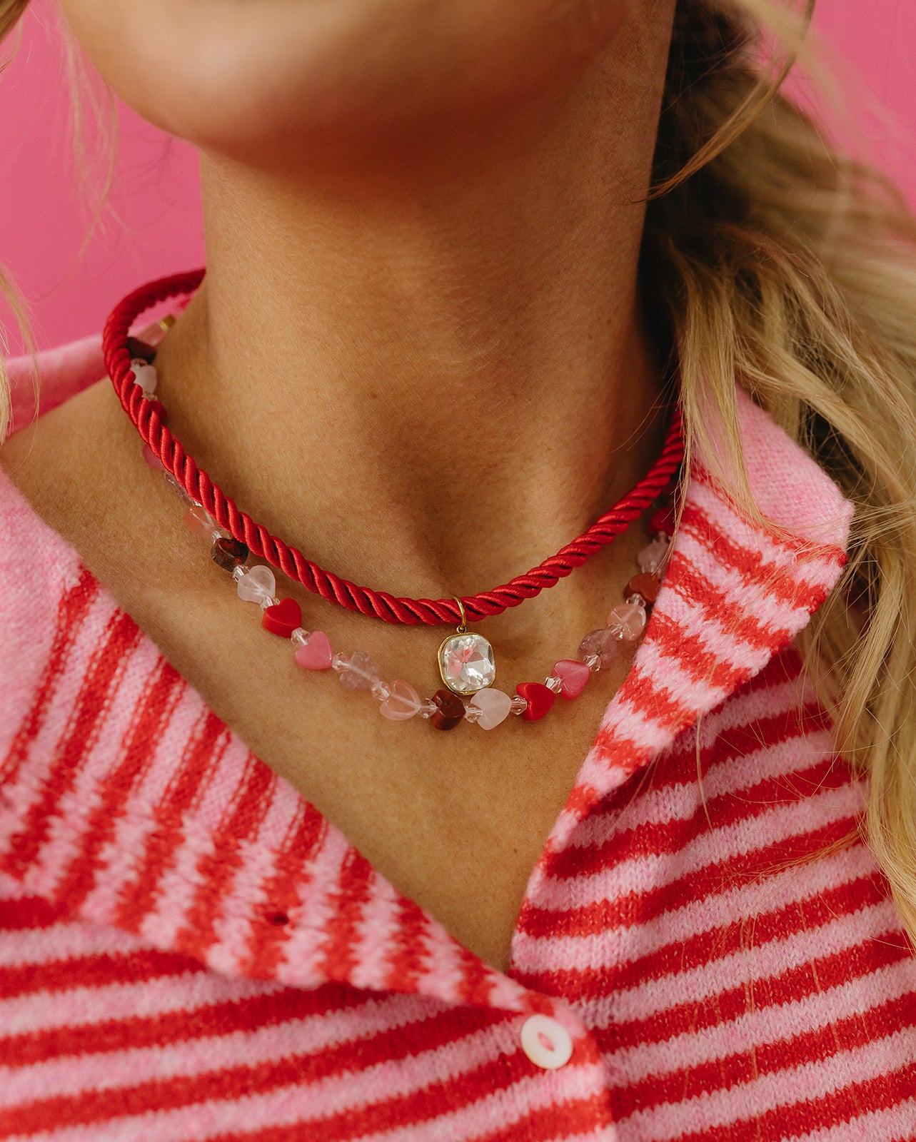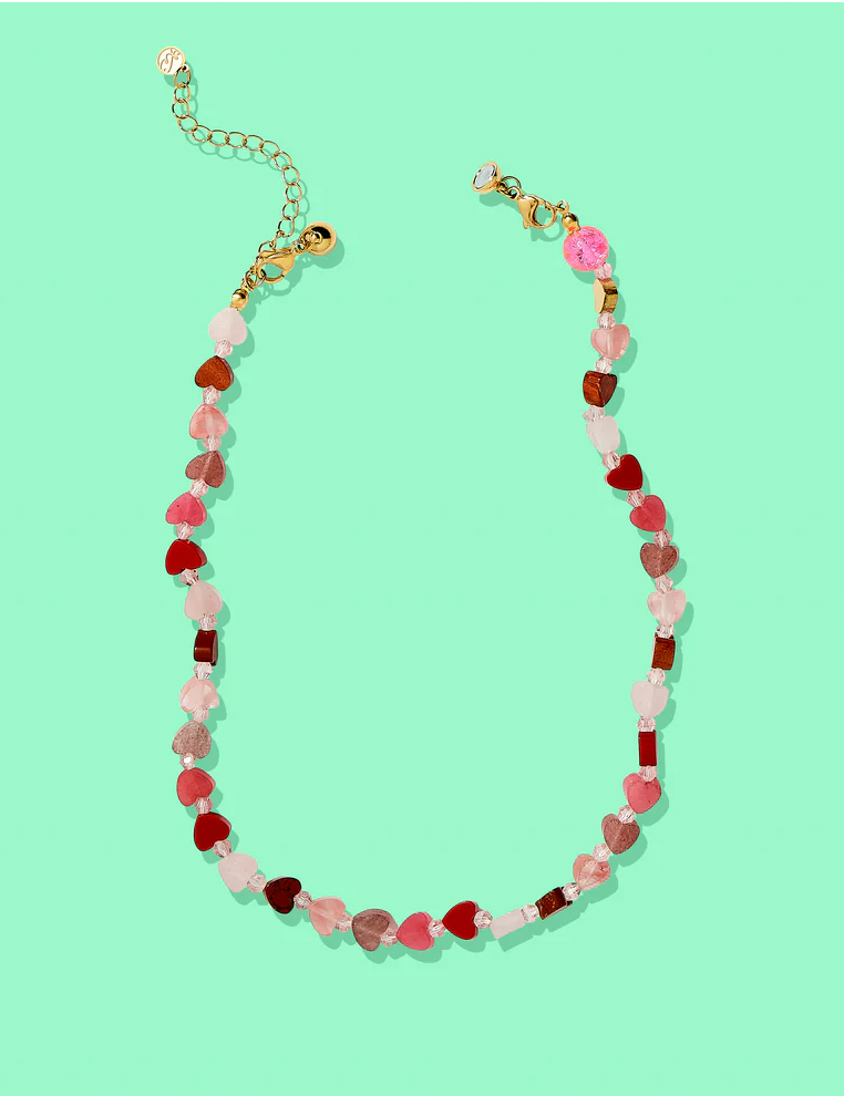 Fall head over heels for the Amore Heart Necklace, where natural stone meets pure romance. Strung with gorgeous heart-shaped beads in soft, dreamy shades of pink, this Valentine's Day stunner celebrates love in the most charming way.