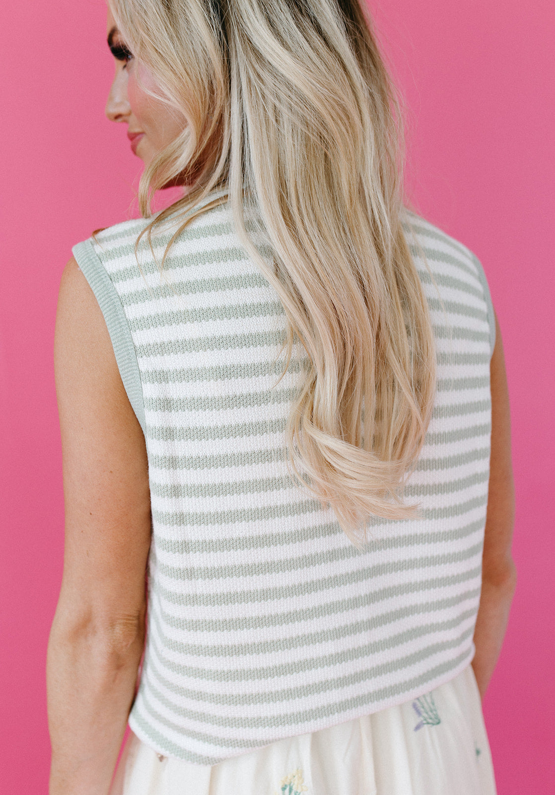 Design Details | Sleeveless | Stripe Detail | Sage Green Hue