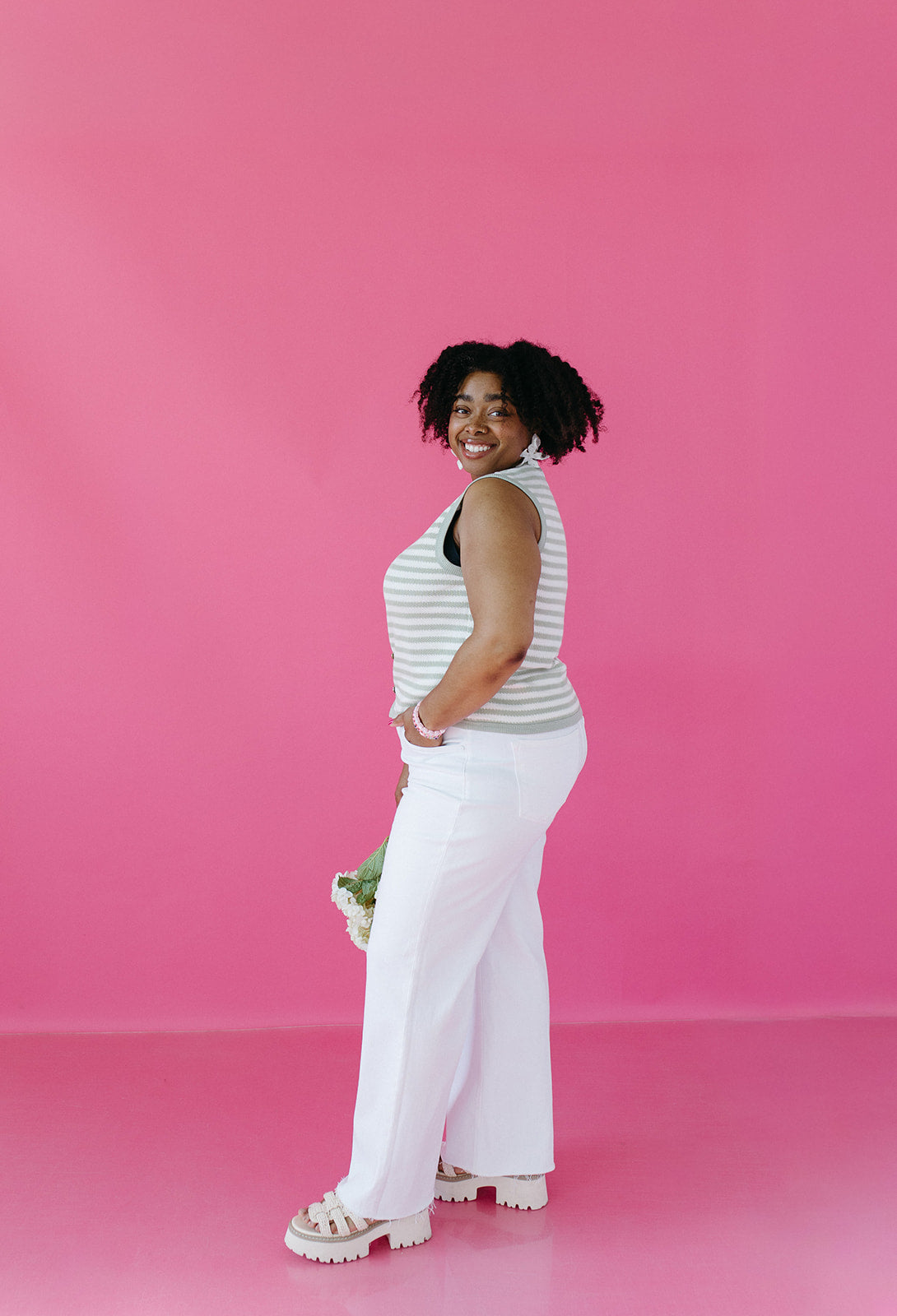 • Wear with a flowy midi skirt and sandals for a feminine, effortless feel