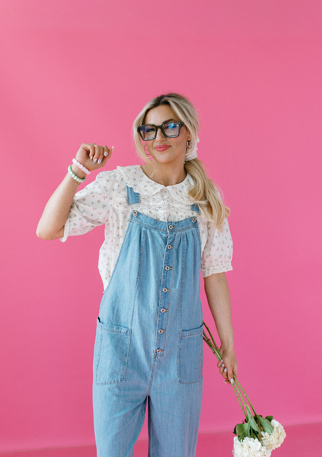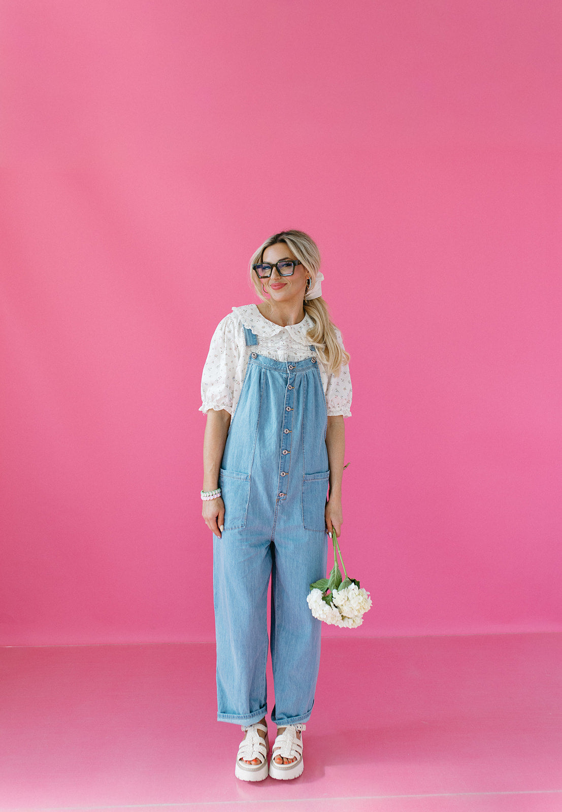 The Blair Denim Overalls are everything you want in a pair of overalls — roomy, relaxed, and endlessly wearable. With functional buttons, adjustable straps, and pockets, they're built for real life while still looking effortlessly put-together. Crafted in a soft cotton blend, they're the kind of piece you'll throw on and feel great in every single time.