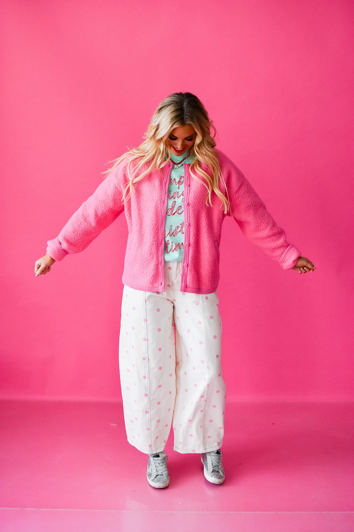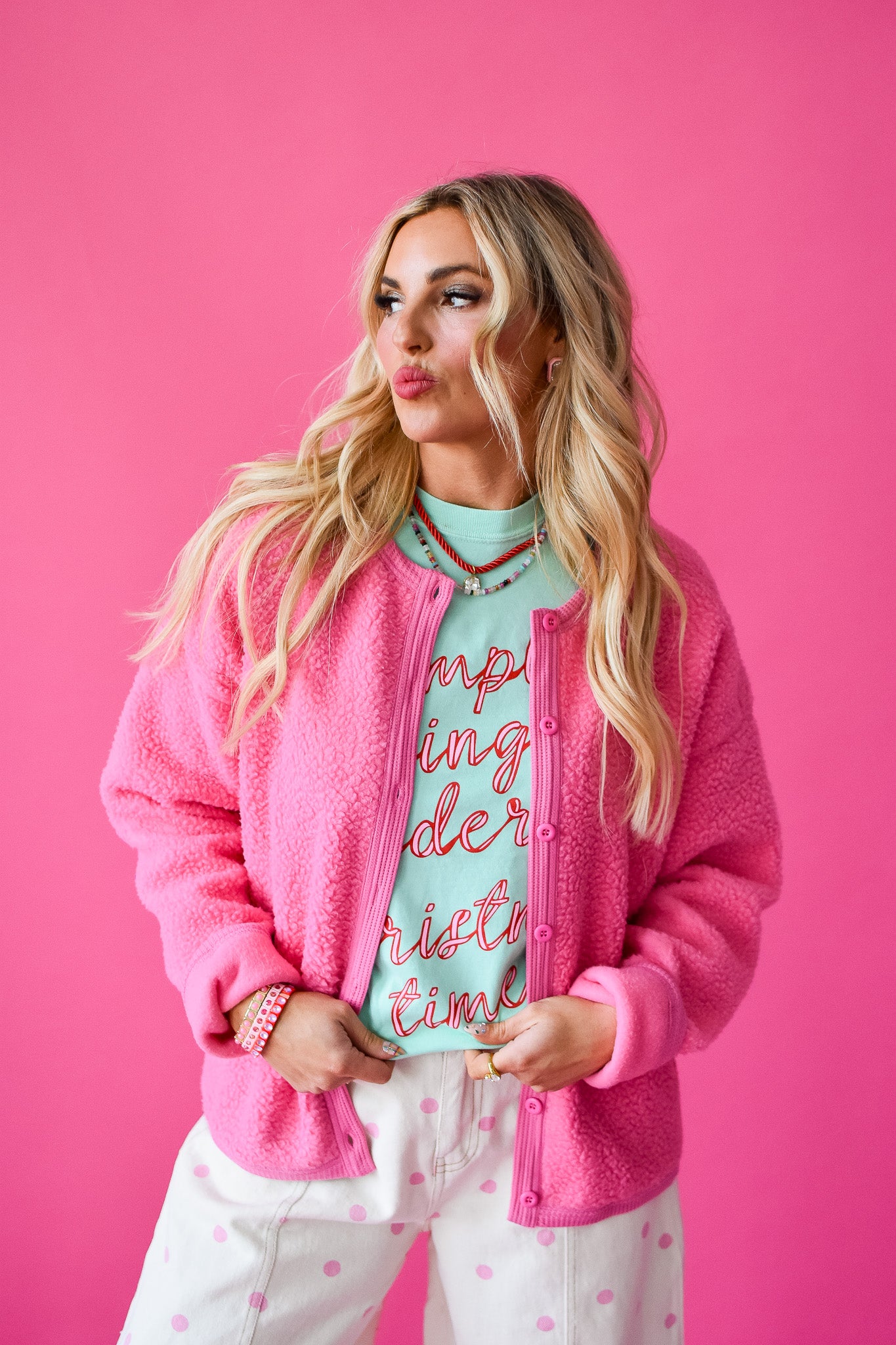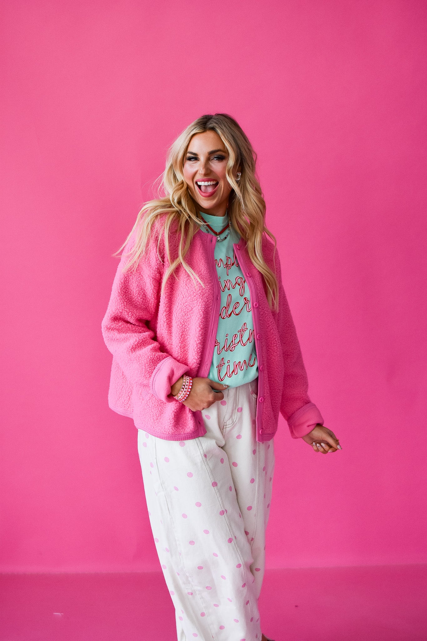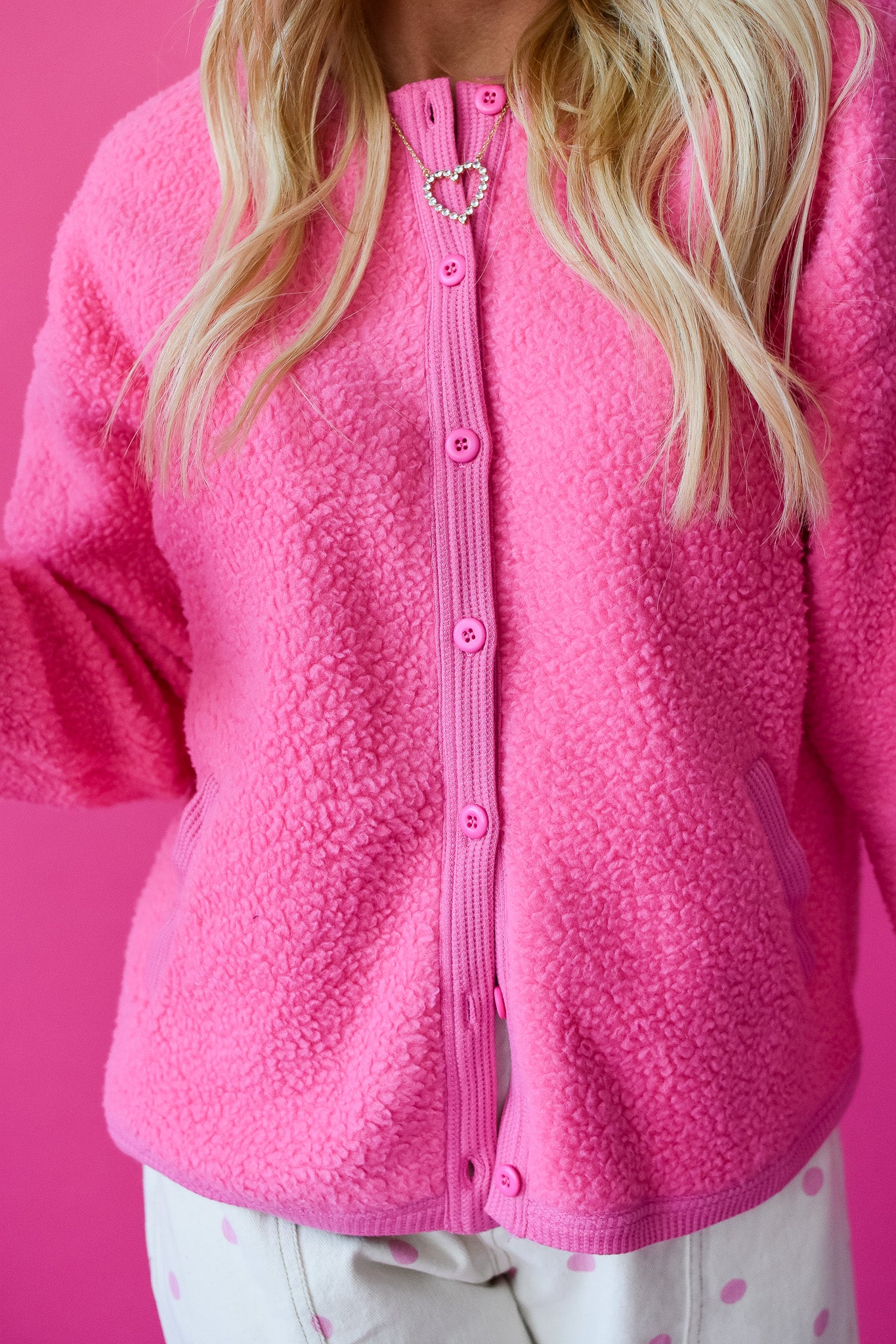 Wrap yourself in cloud-soft luxury with the Elizabeth Sherpa Cardigan. This button-up beauty combines plush sherpa texture with a polished silhouette that effortlessly elevates your everyday wardrobe. In a gorgeous pink hue, it's the perfect layer for cozy days that don't compromise on style. Whether you're running errands or settling in at home, this cardigan delivers comfort that feels as good as it looks.