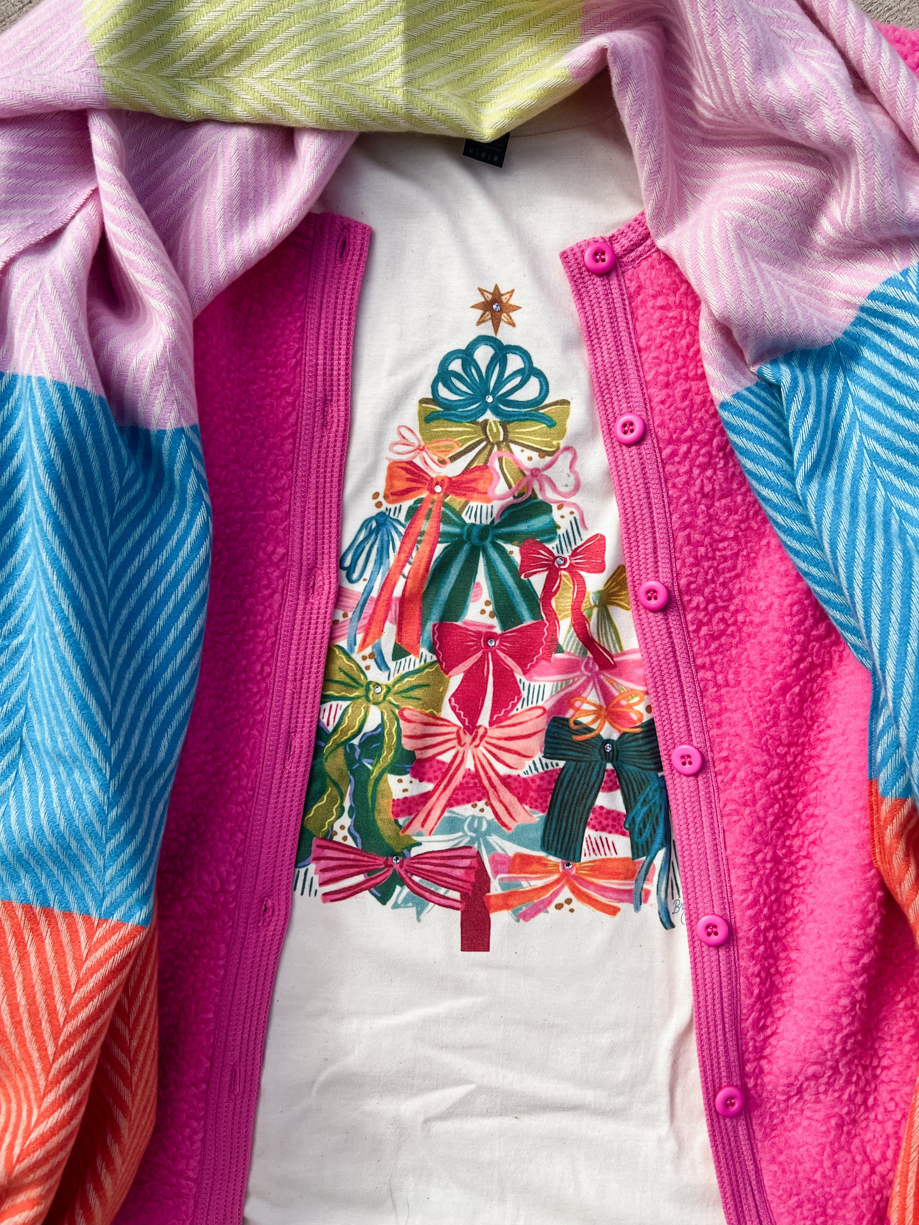 Elevate your casual wardrobe with this charming tee featuring a vibrant bow graphic that sparkles with embellished rhinestones. Crafted from a soft, natural base fabric, it's the perfect blend of everyday comfort and eye-catching style. Whether you're dressing up a simple look or adding personality to your basics, this playful piece brings instant charm and shimmer to any outfit.
