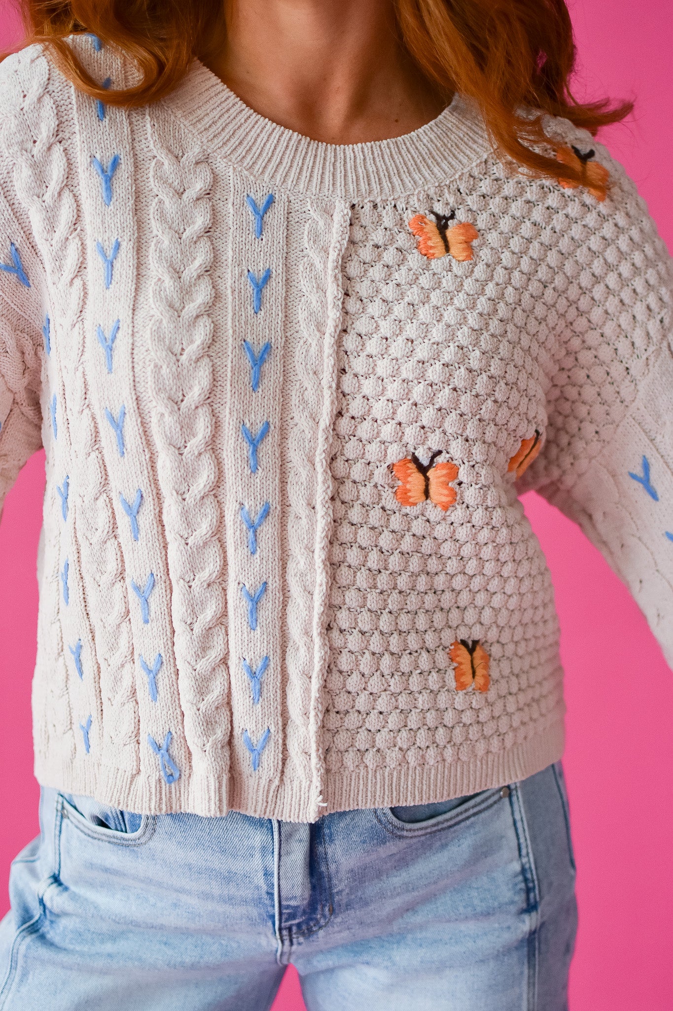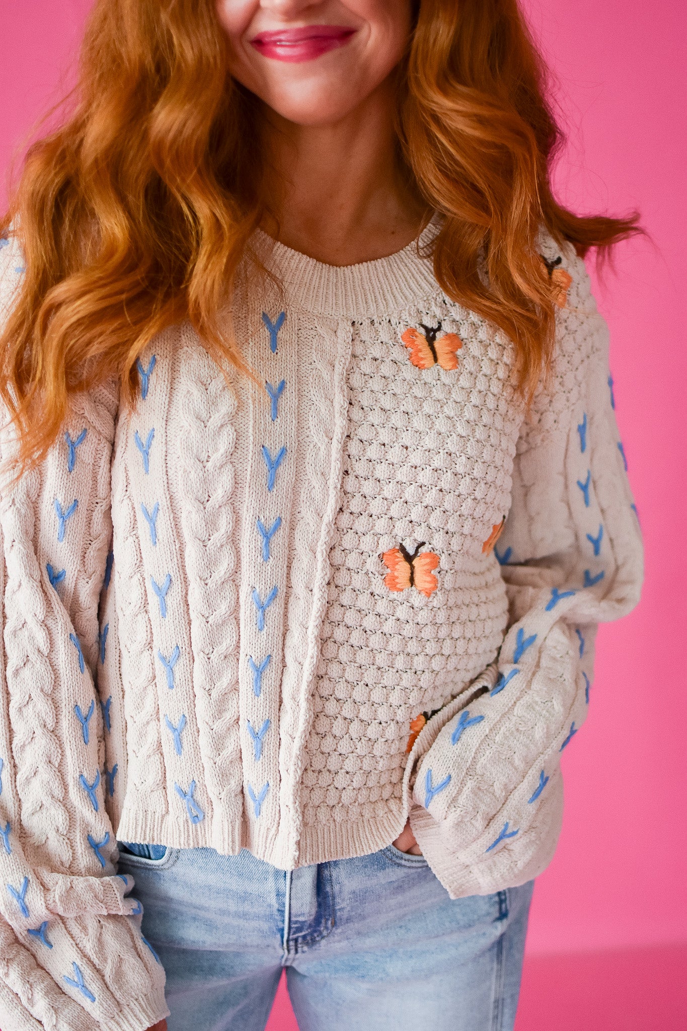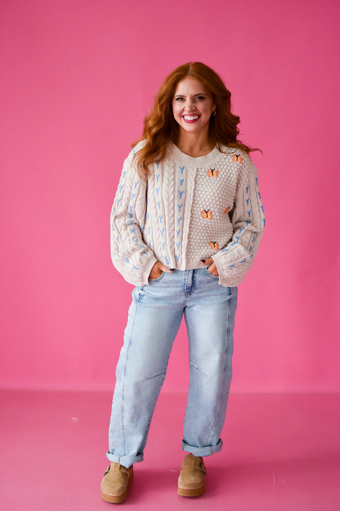 Wrap yourself in cozy softness with the Musgraves Butterfly Sweater, designed for the fun-loving fall gal. Featuring delicate butterfly embroidery, this sweater brings a playful touch to your autumn wardrobe while keeping you warm and comfortable throughout the season. Perfect for crisp days and casual outings, it’s your go-to piece for effortless style and snug vibes.