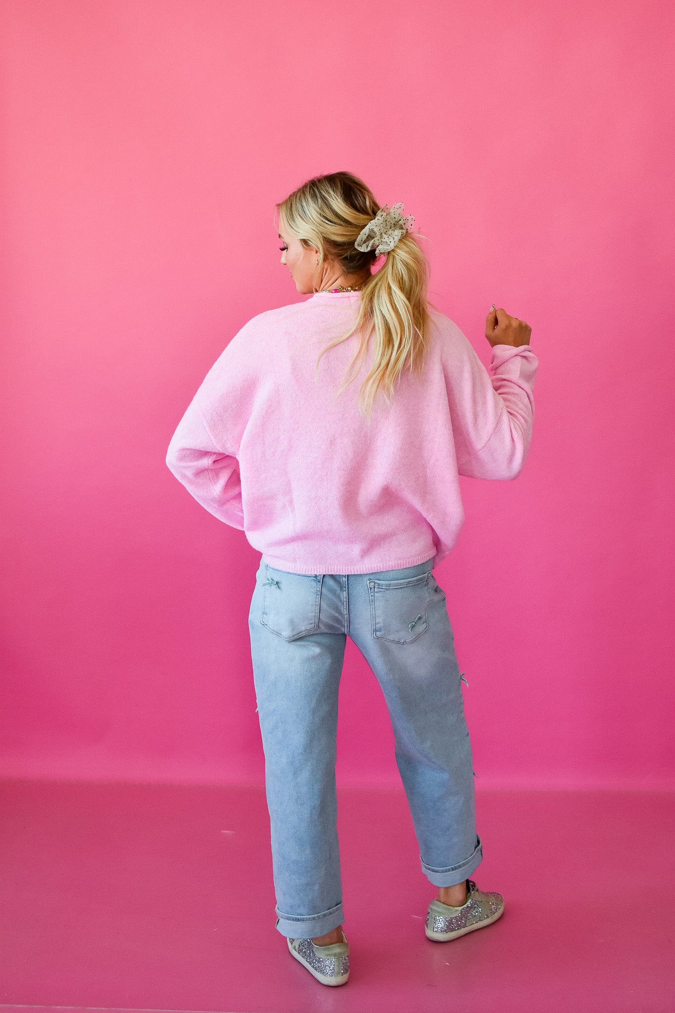 Get ready to go viral in our playful Piper Cardigan! This pale pink button up cardigan features super soft fabric, white buttons and an oversized, relaxed fit for maximum comfort and style.