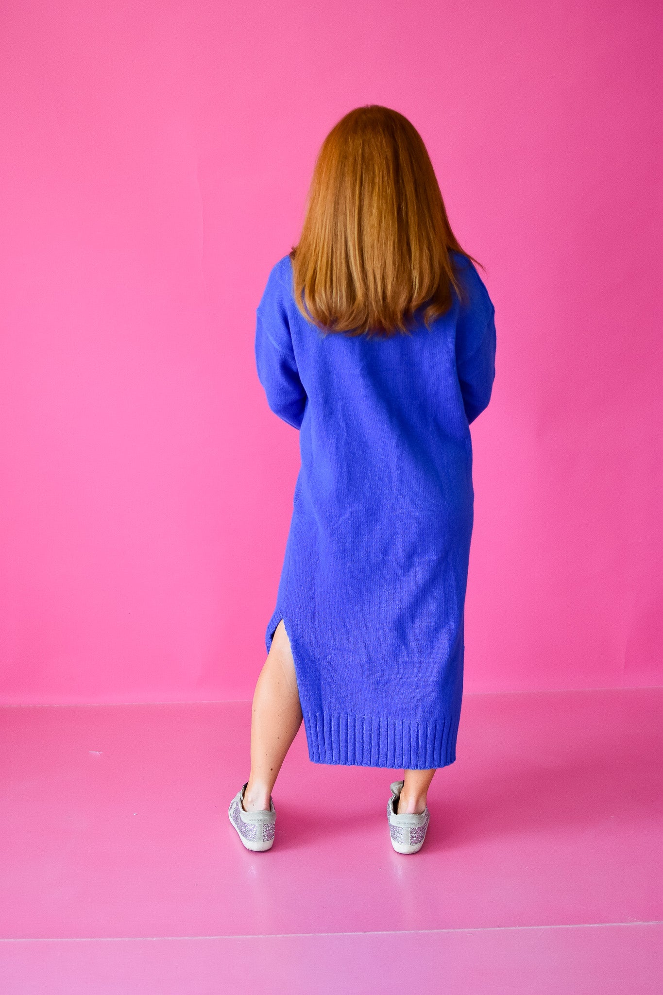Wrap yourself in cozy vibes with the Sophia Midi Sweater Dress in Royal Blue—your new go-to for effortless winter style. This chunky knit beauty features a relaxed, comfortable fit that lets you move freely while keeping you toasty warm. The eye-catching royal blue hue brings a fun pop of color to dreary days, making it perfect for layering with your favorite scarf or wearing solo. From casual coffee runs to weekend hangouts, this maxi-length sweater dress delivers comfort without compromising on style.