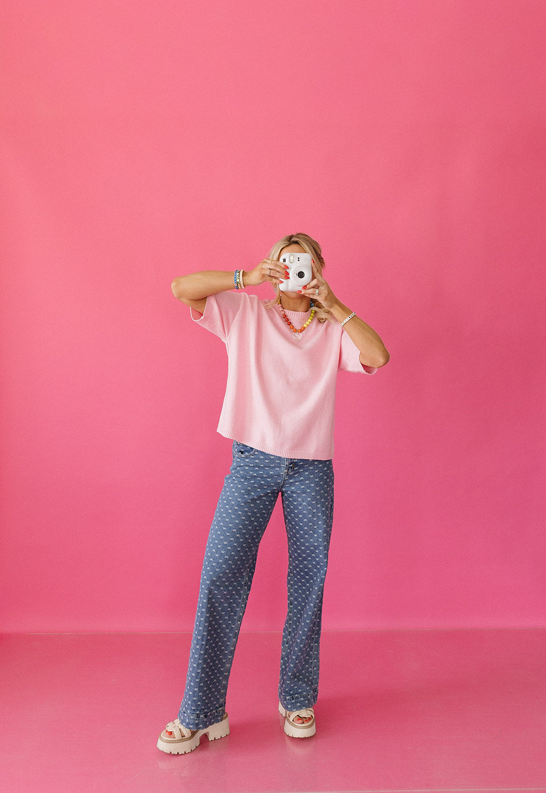 Slip into the Kendall Short Sleeve Sweater and embrace effortless comfort. This bubblegum pink beauty features ribbed detailing at the collar and sleeves for a polished touch, while drop hem sleeves and a relaxed fit create that coveted laid-back vibe. The longer length keeps things interesting, and the incredibly soft fabric makes it impossible to take off. Perfect for those days when style meets pure coziness.