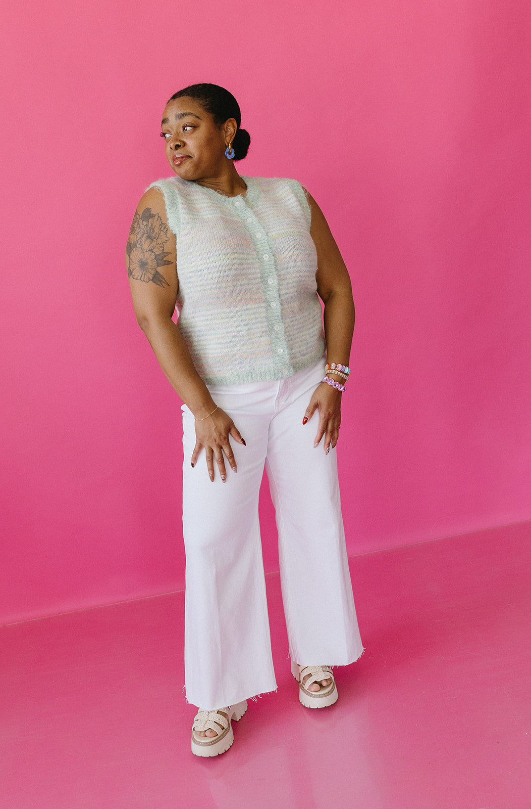 - Style with a tucked-in blouse and heeled mules for polished workwear or brunch