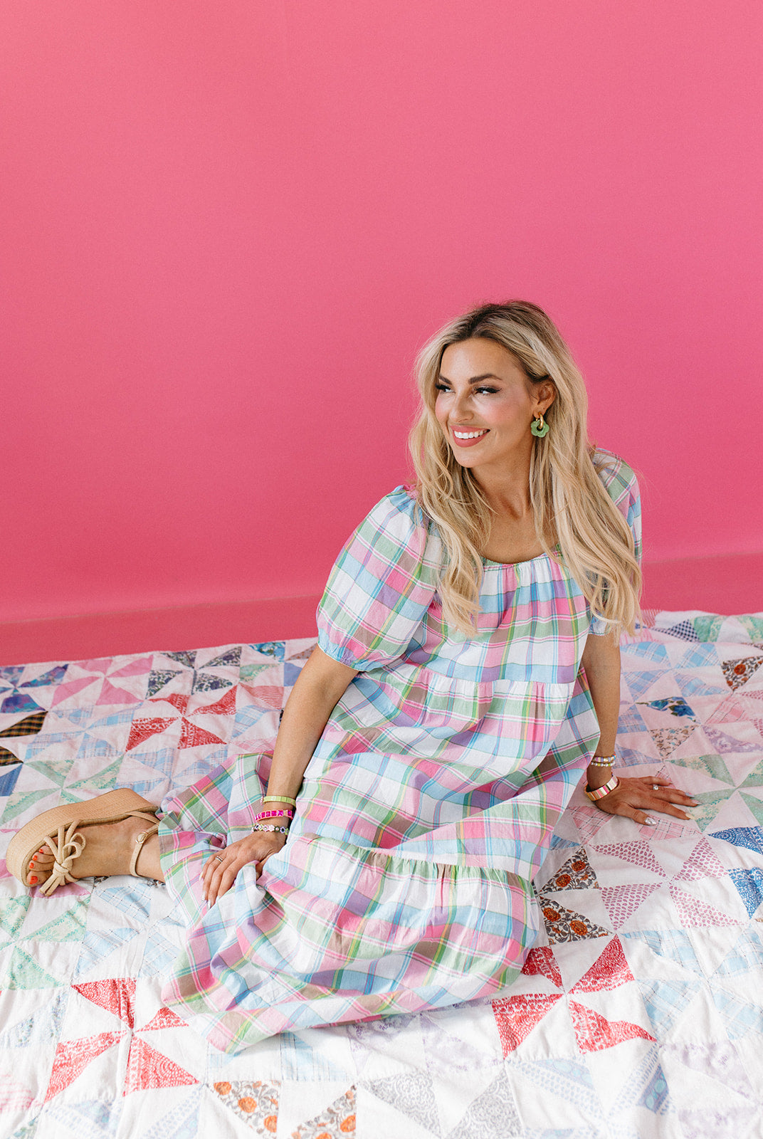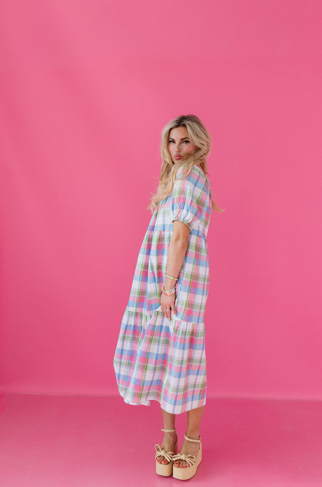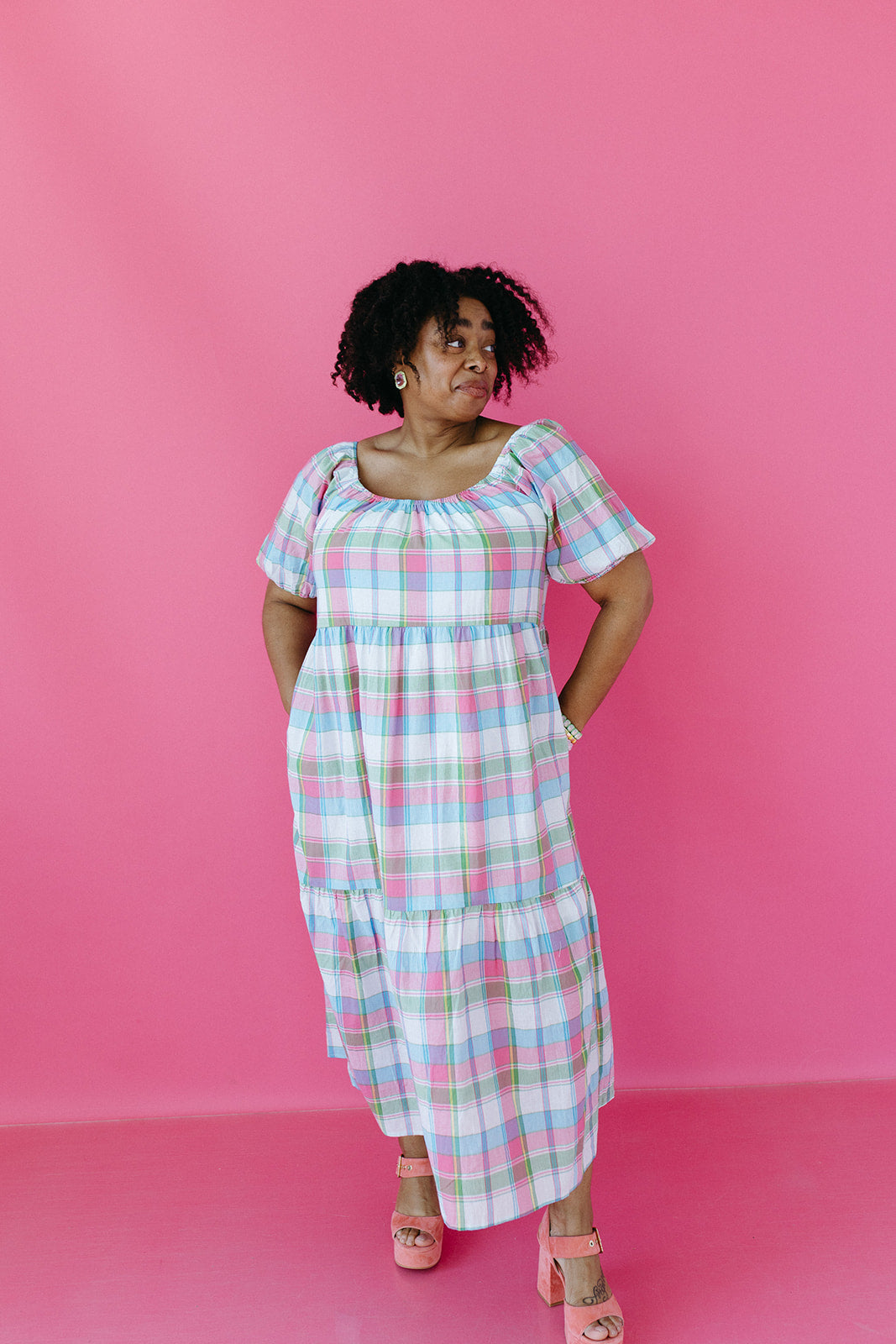 The Tate Plaid Midi Dress is the kind of dress that works for everyone and every occasion. Flowy, lined, and crafted in a soft cotton blend with a touch of stretch, it's as comfortable as it is beautiful. With elastic around the arms, a flattering midi length, and pockets, it's a go-to for everything from Easter brunch to everyday wear — and it's bump-friendly too.