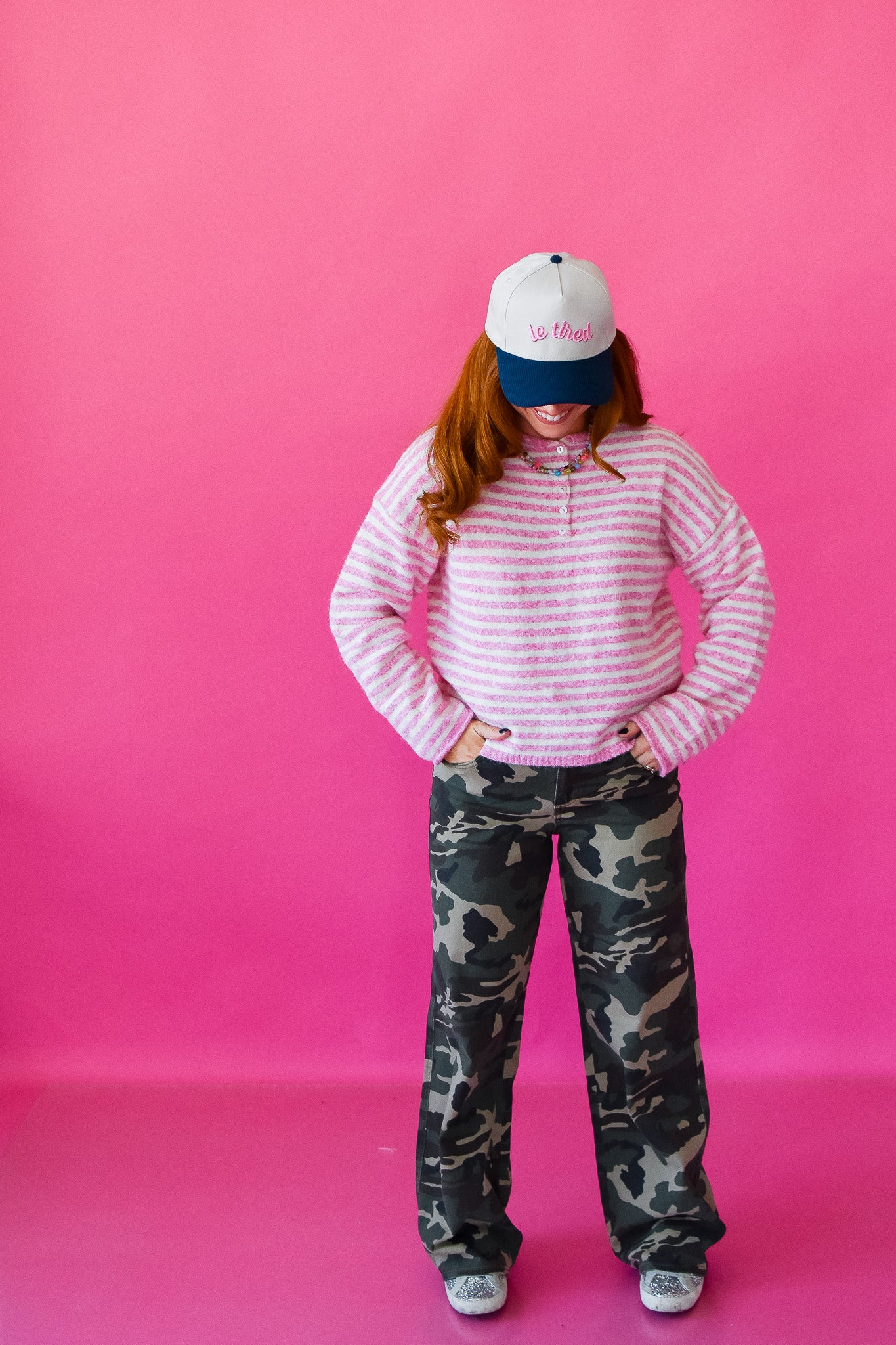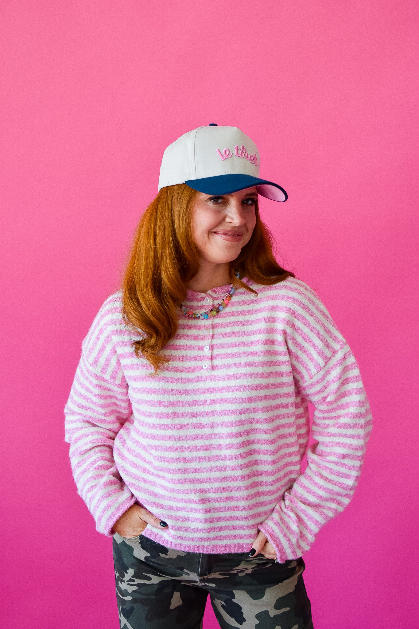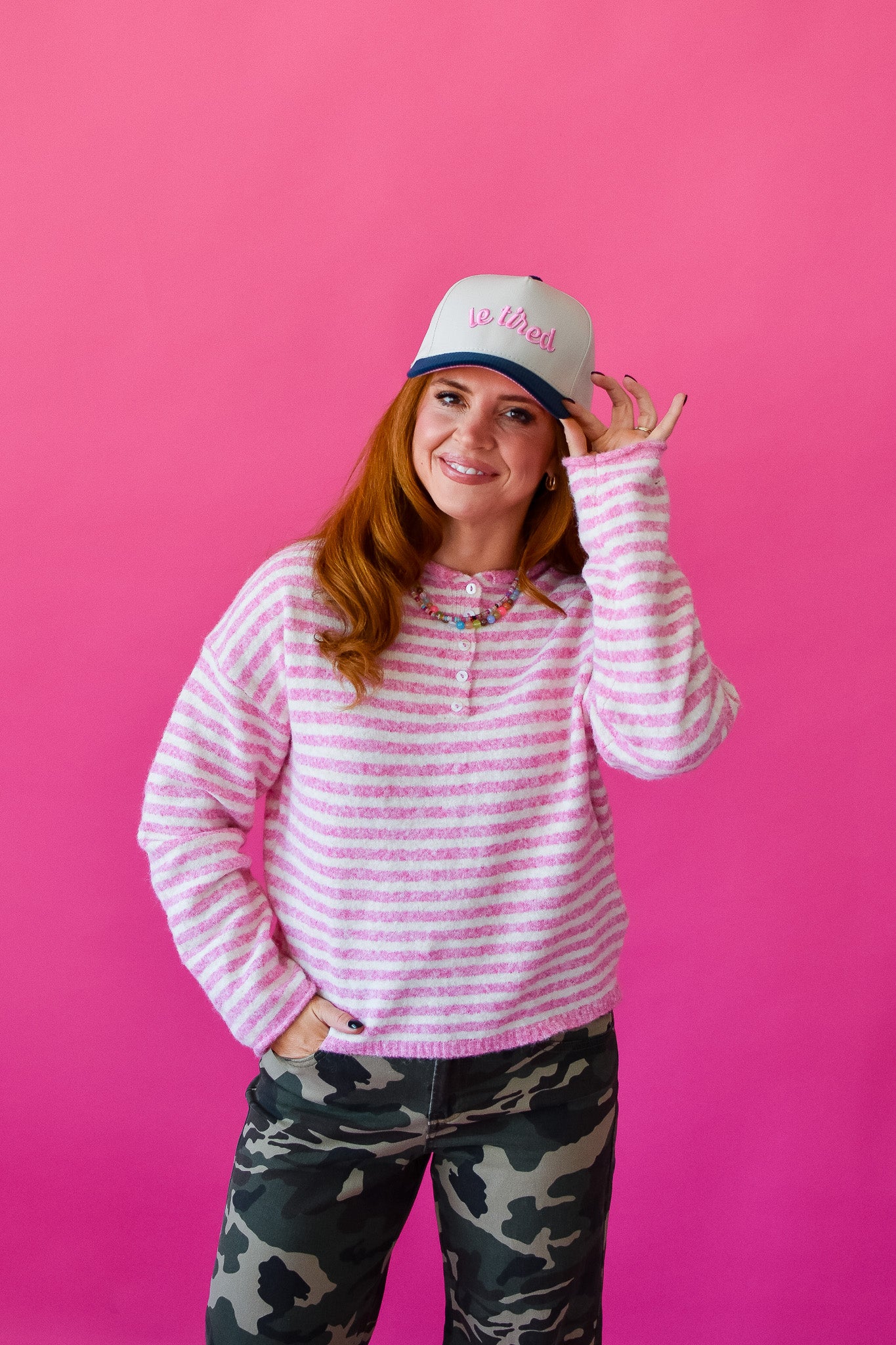 Snuggle into the Allister Striped Henley Pullover, where bubblegum pink meets ivory stripes in a lively combo. This relaxed-fit, button-down top feels super soft and cozy—perfect for adding a fun pop of color to your casual days while keeping you comfy all day long.