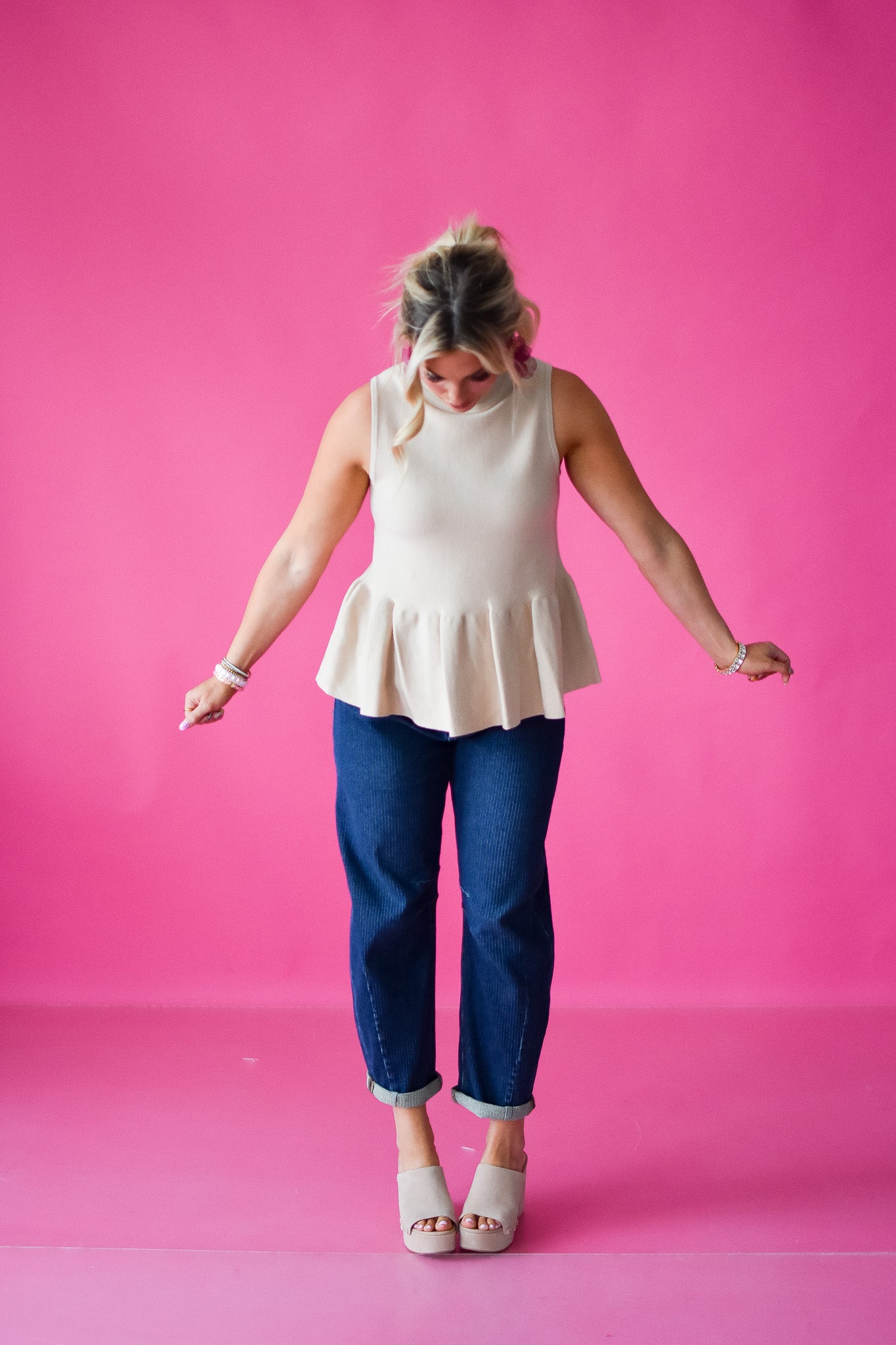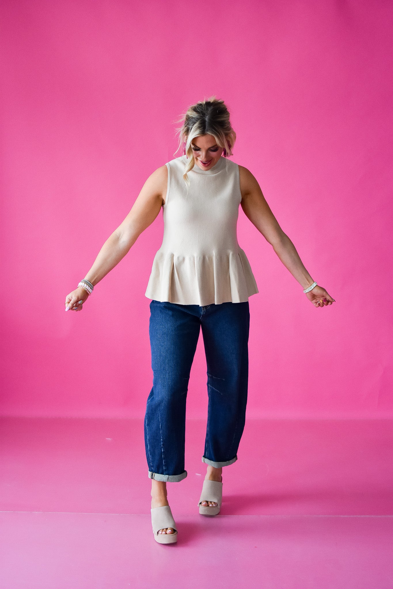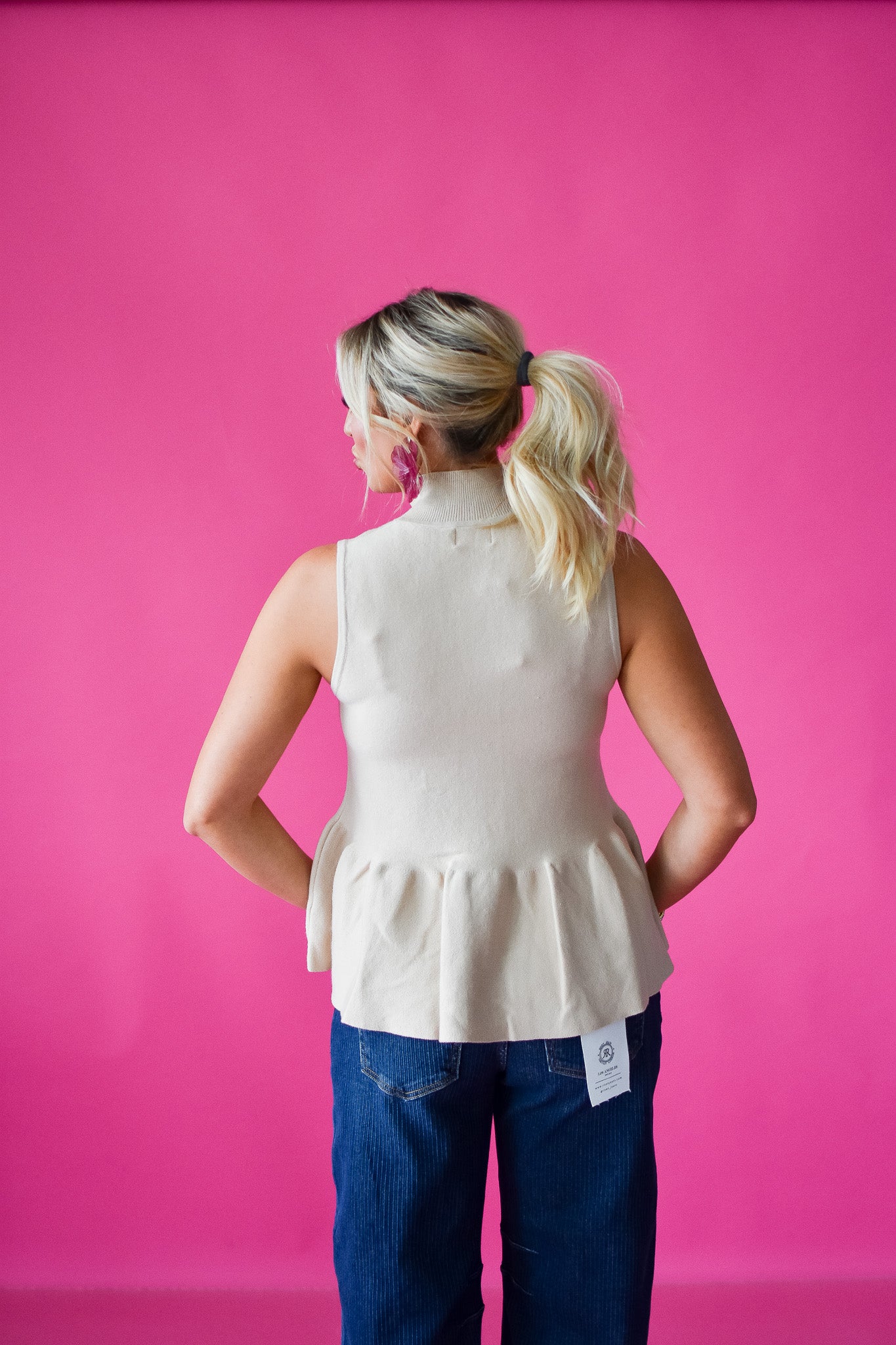 Get ready to turn heads in the Ophelia Mock Neck Peplum Sweater Tank! This sleeveless wonder hugs your figure with a flattering peplum fit, combining cozy sweater material with a chic mock neck. Perfect for date nights or those special occasions when you want to feel effortlessly stylish and playful. Pair it with your favorite skirt or tailored pants for a look that’s both comfy and captivating.