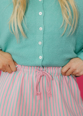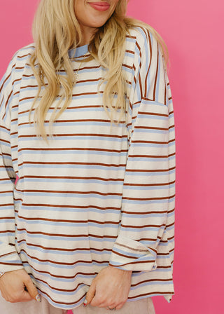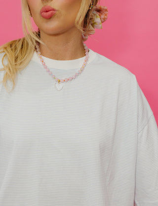 Kelly Ann Oversized Stripe Short Sleeve Tee In Light Blue