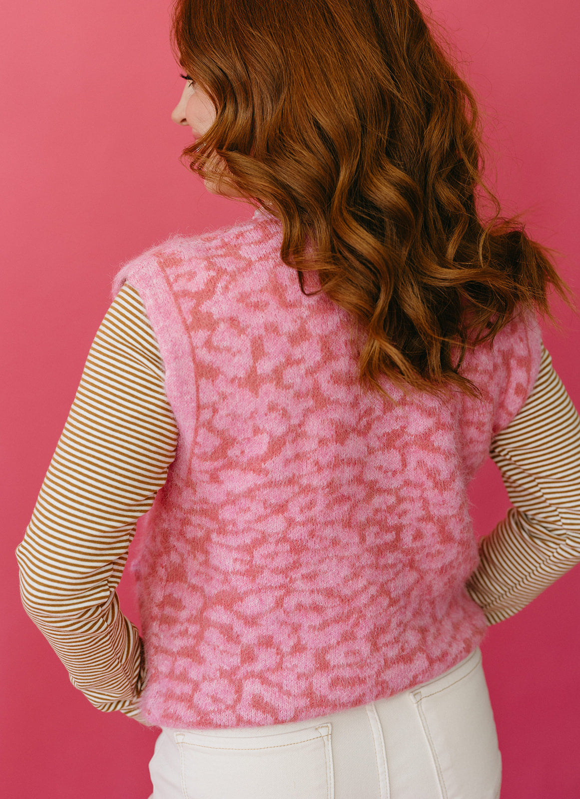 The Ana Stripe Long Sleeve Tee is your new wardrobe MVP. Featuring classic camel and white stripes with an adorable collar detail, this piece brings effortless charm to any outfit. Crafted from thick, stretchy fabric that moves with you, it's equally stunning layered under jackets or worn solo. Whether you're dressing up or keeping it casual, this tee delivers comfort and style that works harder than you do.