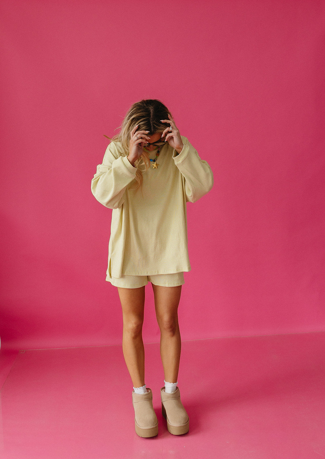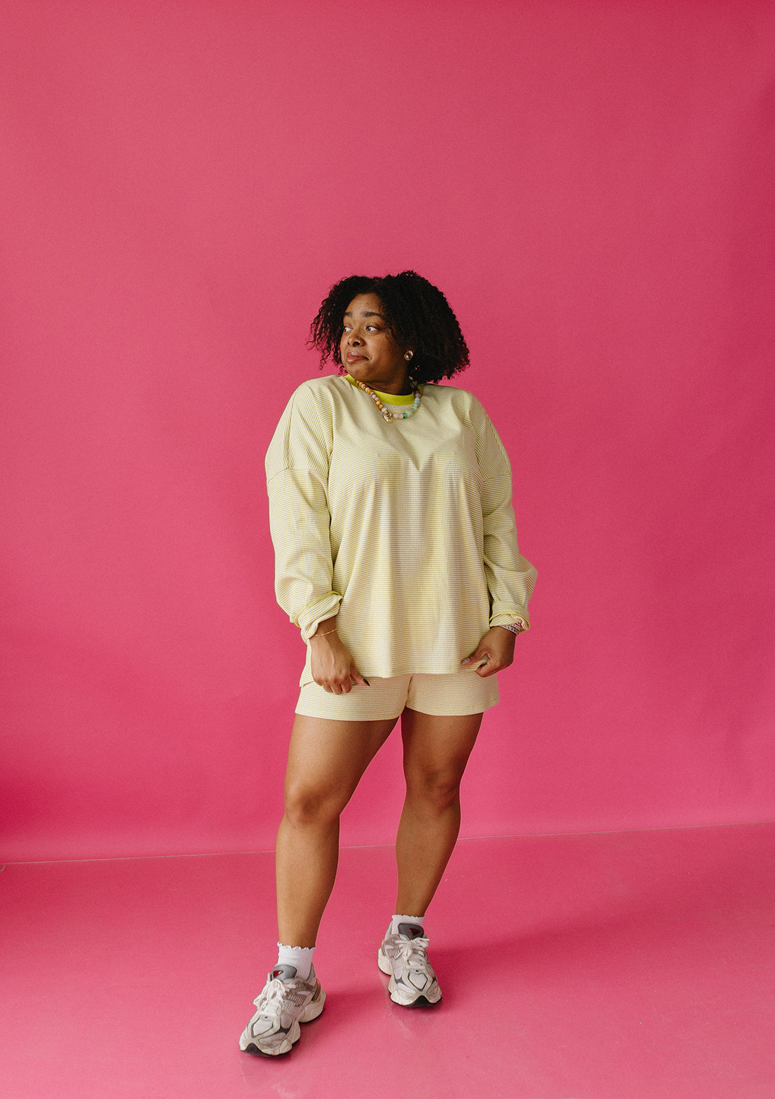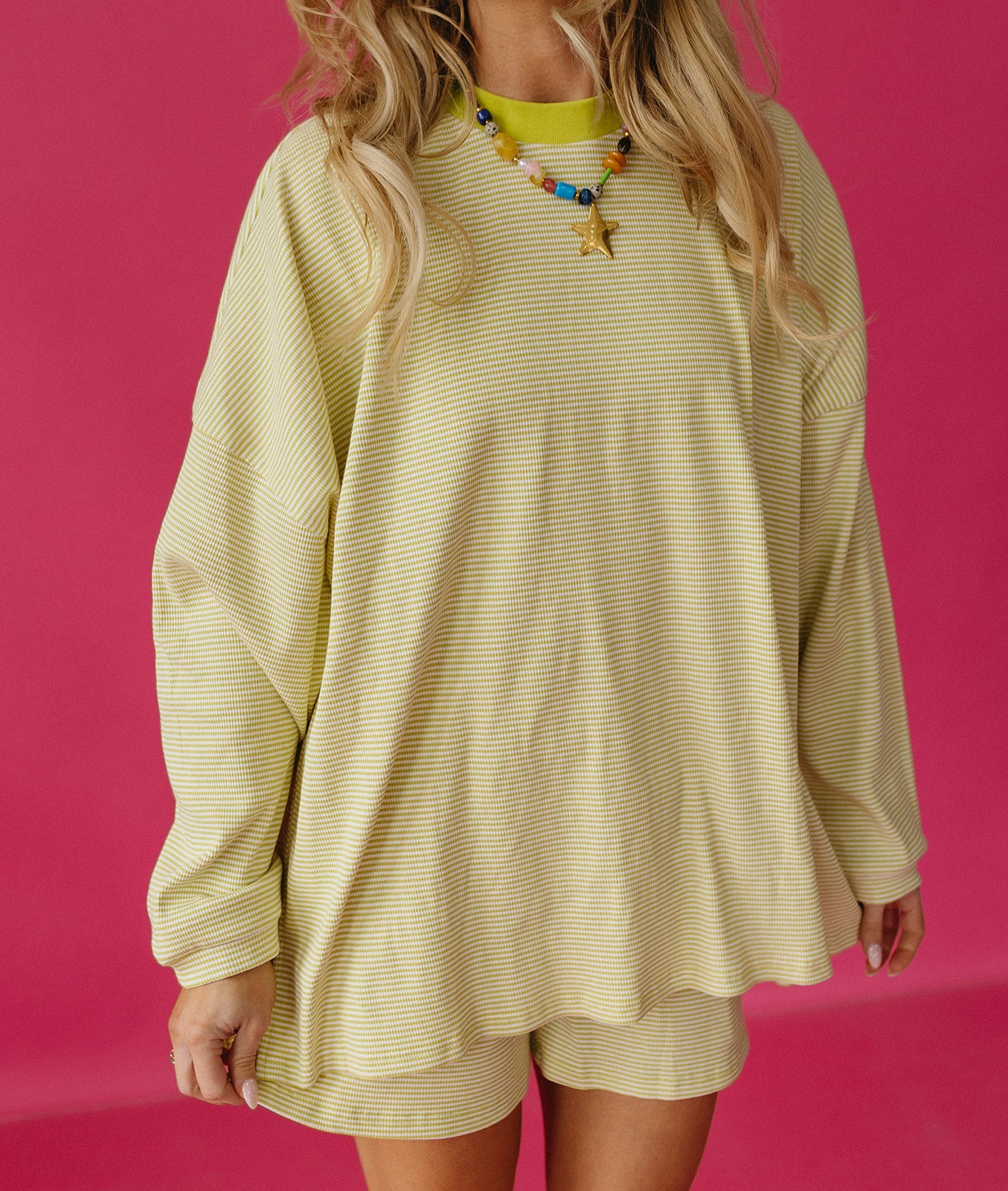 Slip into the Mika Striped Tunic Top and discover effortless style! This playful lime green and white ribbed beauty fits just like our beloved Nyah set top, making it a wardrobe favorite. Rock the flattering side slits and longer back hem for a modern silhouette that works solo or layered under our Bowen cardigan. Mix and match with the coordinating shorts (sold separately) for a complete look that turns heads. Pure citron charm, ready to brighten your day!