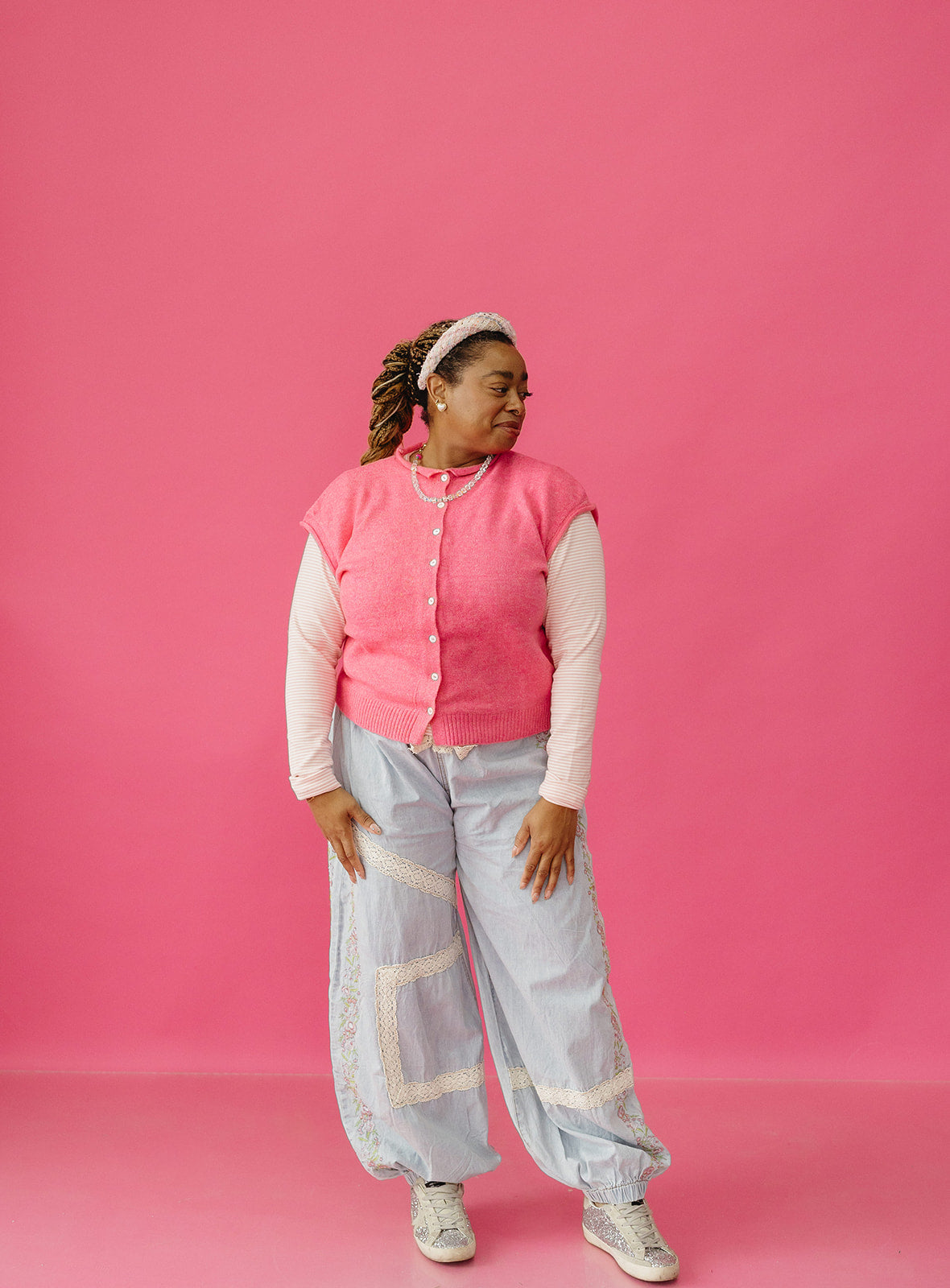 Get ready for spring with our best selling Sleeveless Piper Cardigan! Featuring a class bubblegum pink, rolled cap sleeves, and a full button down, this cardigan is a must-have for your wardrobe. Perfect for layering and adding a touch of playfulness to any outfit.