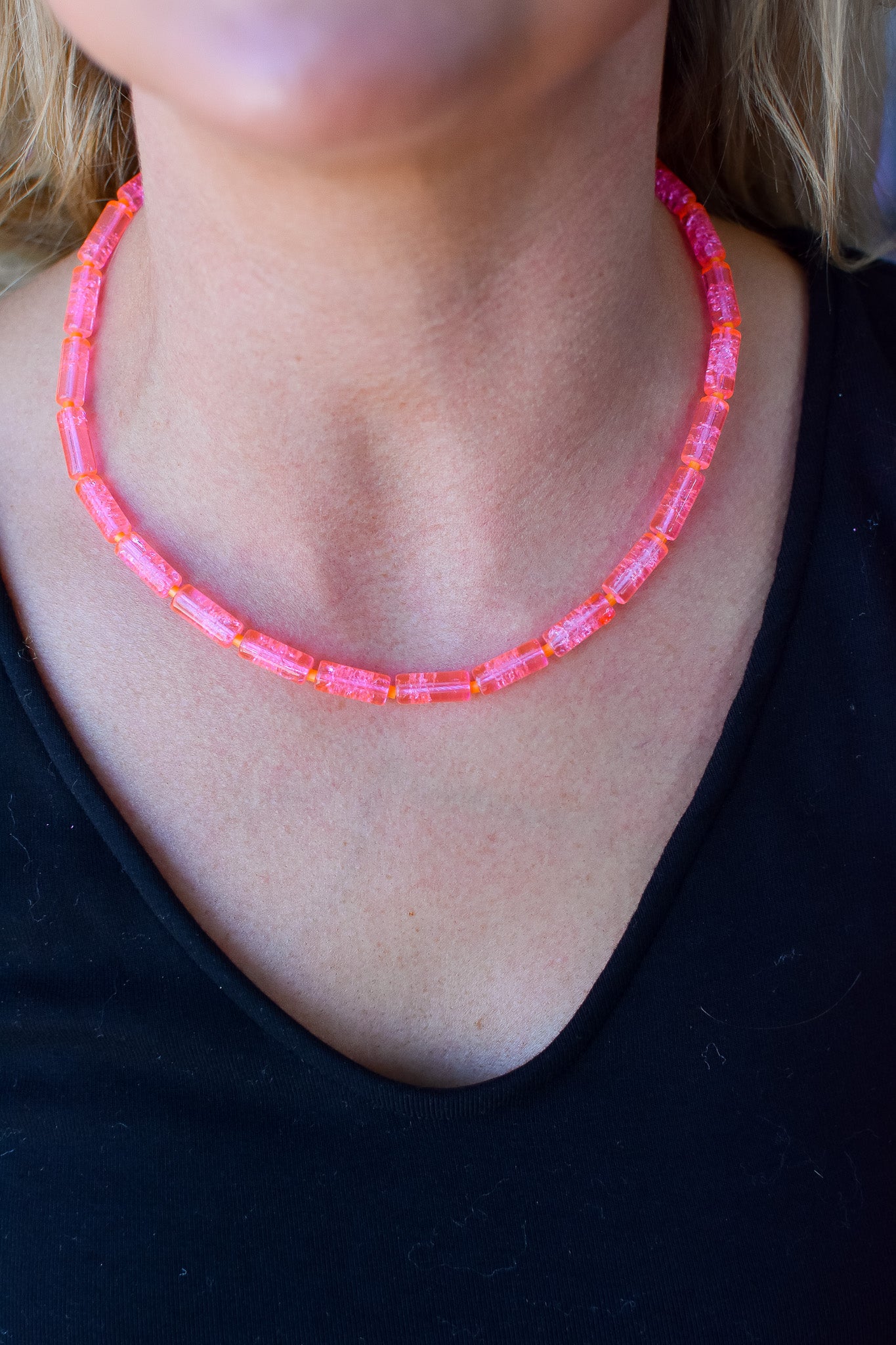 Add a pop of playful color to your fall layers with the Addison Necklace. Featuring vibrant pink crackled beads paired with bright orange seed beads, this necklace brings a cheerful glow to any outfit. The magnetic clasp makes it easy to wear, while the extender chain lets you customize your look for perfect layering. Brighten up your autumn style with this fun and versatile piece!