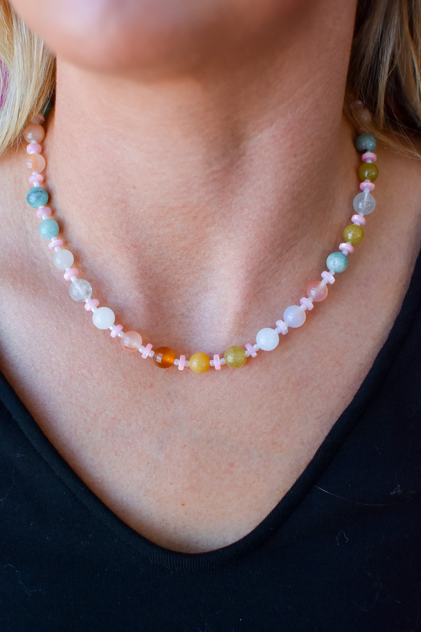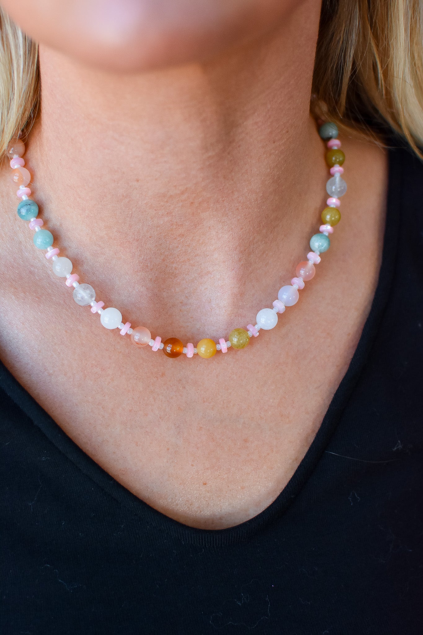 Brighten your fall outfits with the Sloane Necklace, featuring colorful beads that add a fun pop to any look. Perfect for layering, this playful piece includes a magnetic clasp for easy wear and an extender chain to customize your fit. Elevate your style with a necklace as vibrant and versatile as you are!