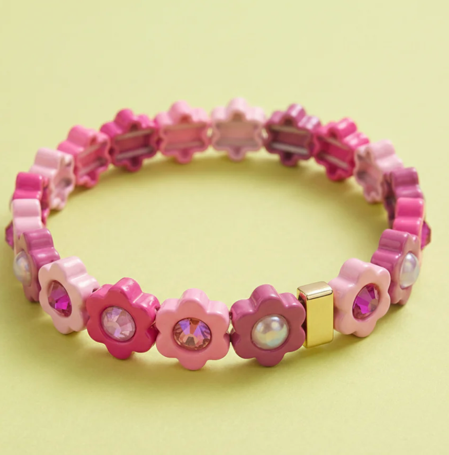 Charming, playful, and effortlessly fun. This daisy bracelet features adorable pink enamel flowers adorned with colorful gemstone centers that sparkle with every movement. The stretch styling means no clasps, no fuss—just slip it on and go. It's the kind of accessory that brings instant charm and personality to any look.