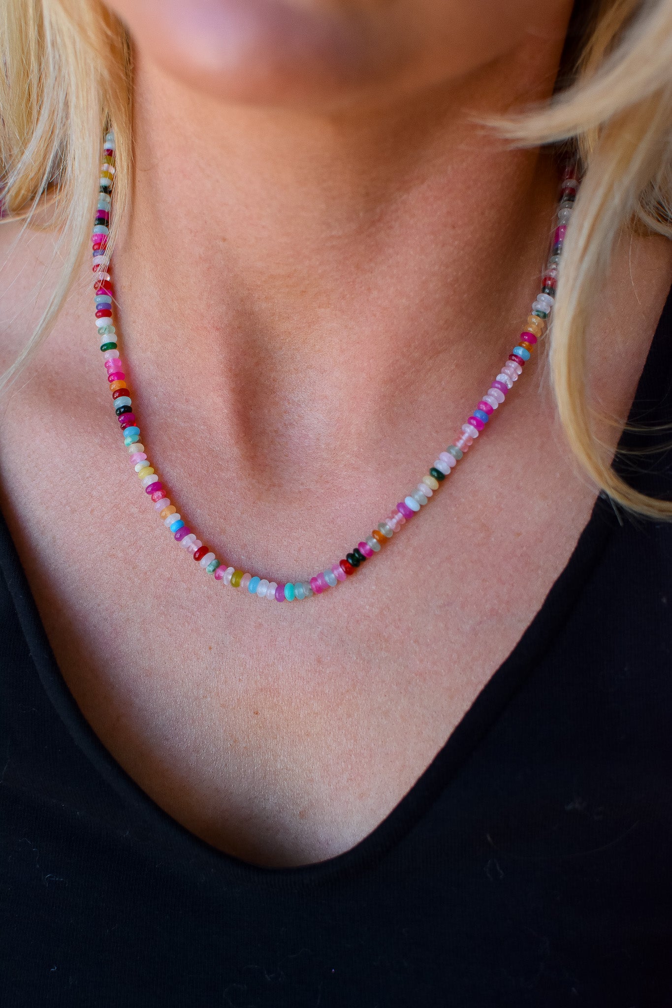 Brighten your fall look with the Lizzie Necklace, featuring colorful natural stone beads perfect for playful layering. Its convenient magnetic clasp and extender chain make it easy to wear at your preferred length while adding a cheerful pop of color to any outfit.Brighten your fall look with the Lizzie Necklace, featuring colorful natural stone beads perfect for playful layering. Its convenient magnetic clasp and extender chain make it easy to wear at your preferred length while adding a cheerful pop of color to any outfit.