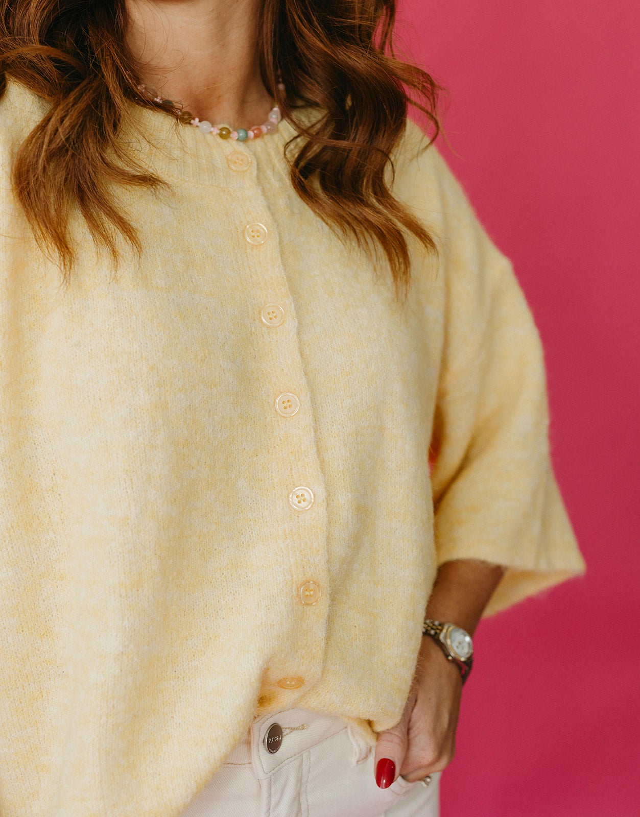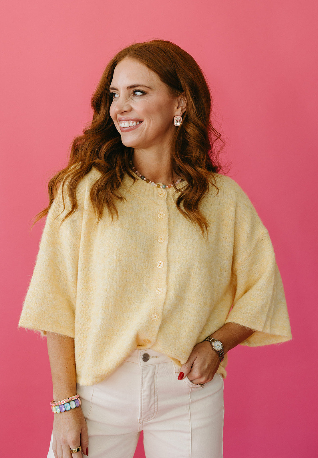 Cozy meets cute in the Rayna Short Sleeve Cardigan in Butter. This super soft, butter yellow essential adds a warm hug to any outfit while keeping things light and breezy with its short sleeves. Perfect for layering or wearing solo, it’s playful comfort that brightens your style effortlessly.